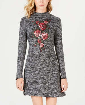 Description: Ultra Flirt Juniors Sketchbook Roses Mock-Neck Dress Juniors Juniors Clothing - Dresses. Attributes: Size: XXS Color: Black Marl