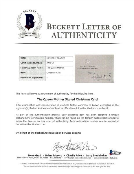 1967 Queen Mother Autogramm Elizabeth II's Mother Signed Christmas Card COA