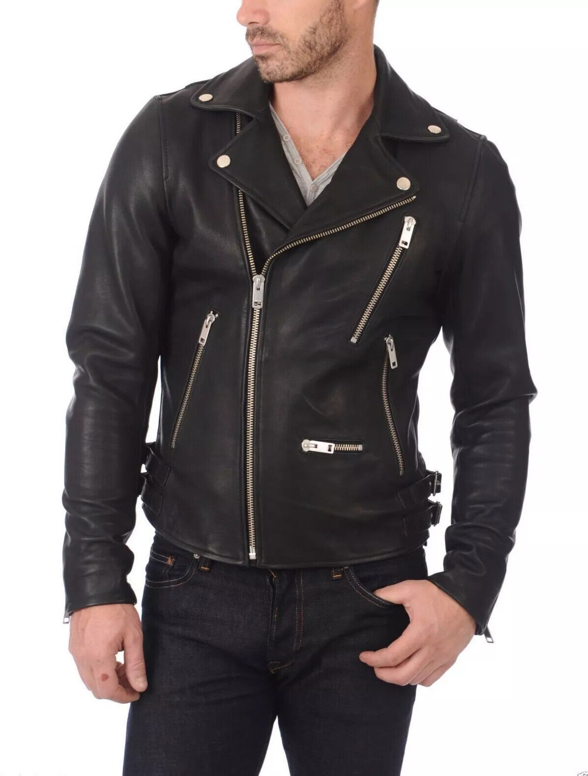 The Jacket are made of 100% real Genuine Lambskin Leather. Available in all sizes and colors. All our product can be customized as per Buyer requirement. Leather is our passion We source the best leather skins that are soft Napa Leather. We use durable, Hardware in 4 custom finishes: Gun Metal, Silver, Gold and Antique. We offer worldwide delivery !