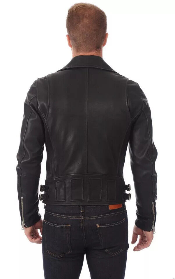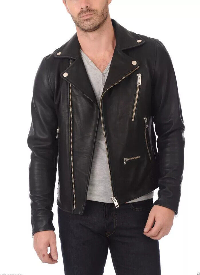 Black New Men's Genuine Lambskin Leather Jacket Stylish Motorcycle Biker Jacket/us