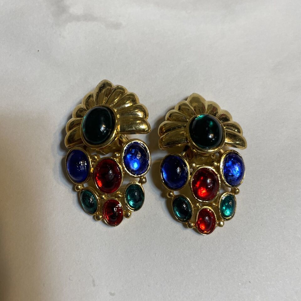 Joan Rivers Earrings Clip-on Egg Oval Red Black Goldtone Silver Rhinestone Vtg.