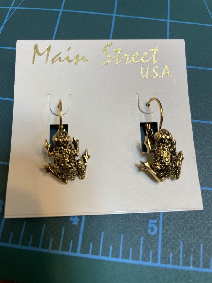Frog Earrings Gold Tone USA Made In Stock and similar items