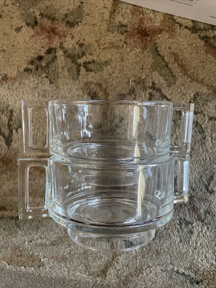 Lot of 2 VTG 60s Joe Colombo Arno Italy Glassware Bowls w/Double Handles Stock