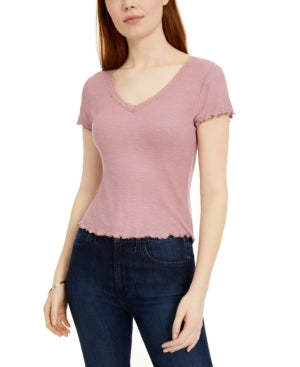 Hippie Rose Juniors Lace-Trimmed Lettuce-Edge T-Shirt