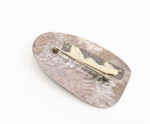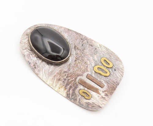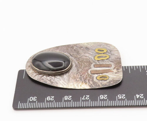 925 Sterling Silver - Vintage Modernist Hammered Large Onyx Brooch Pin - BP10319