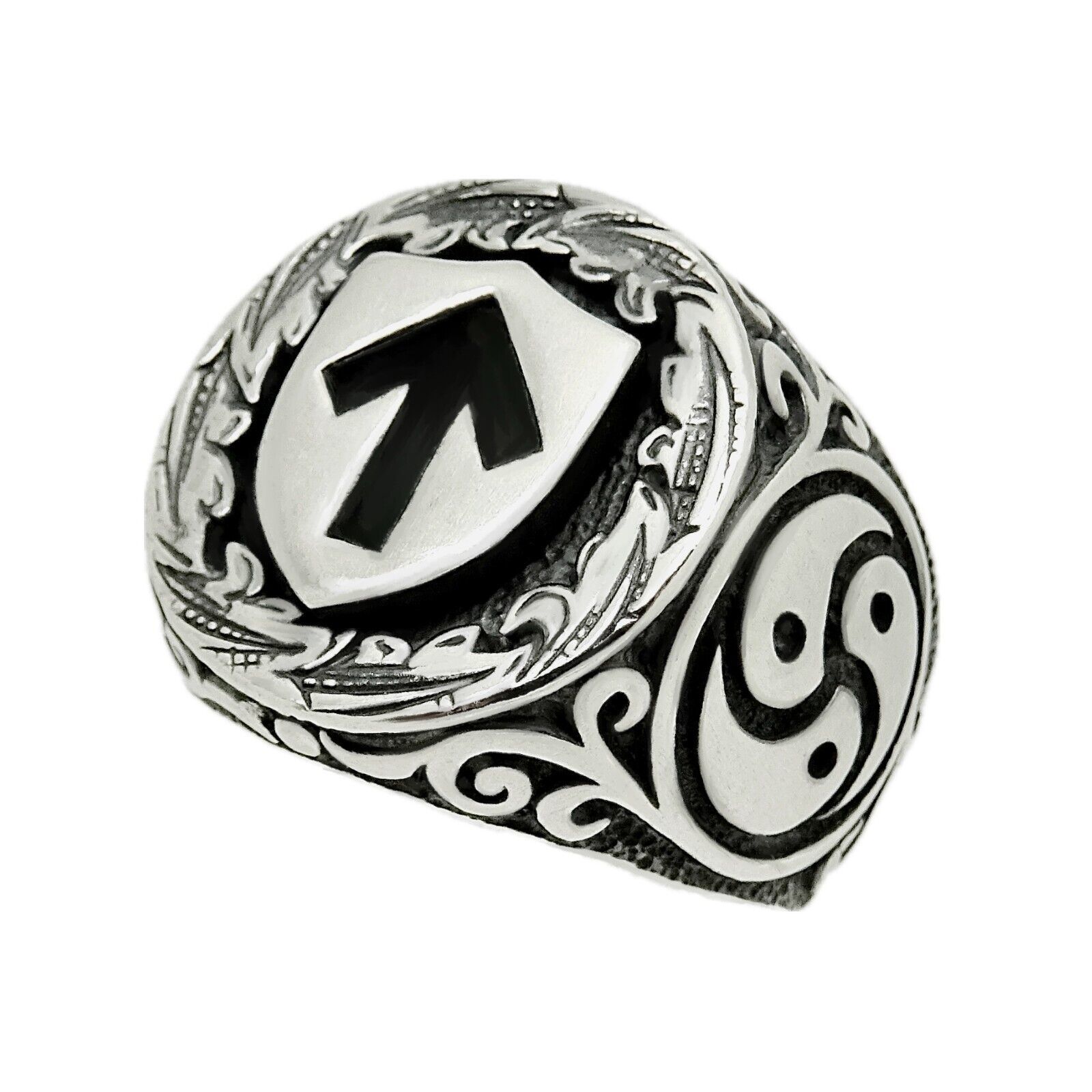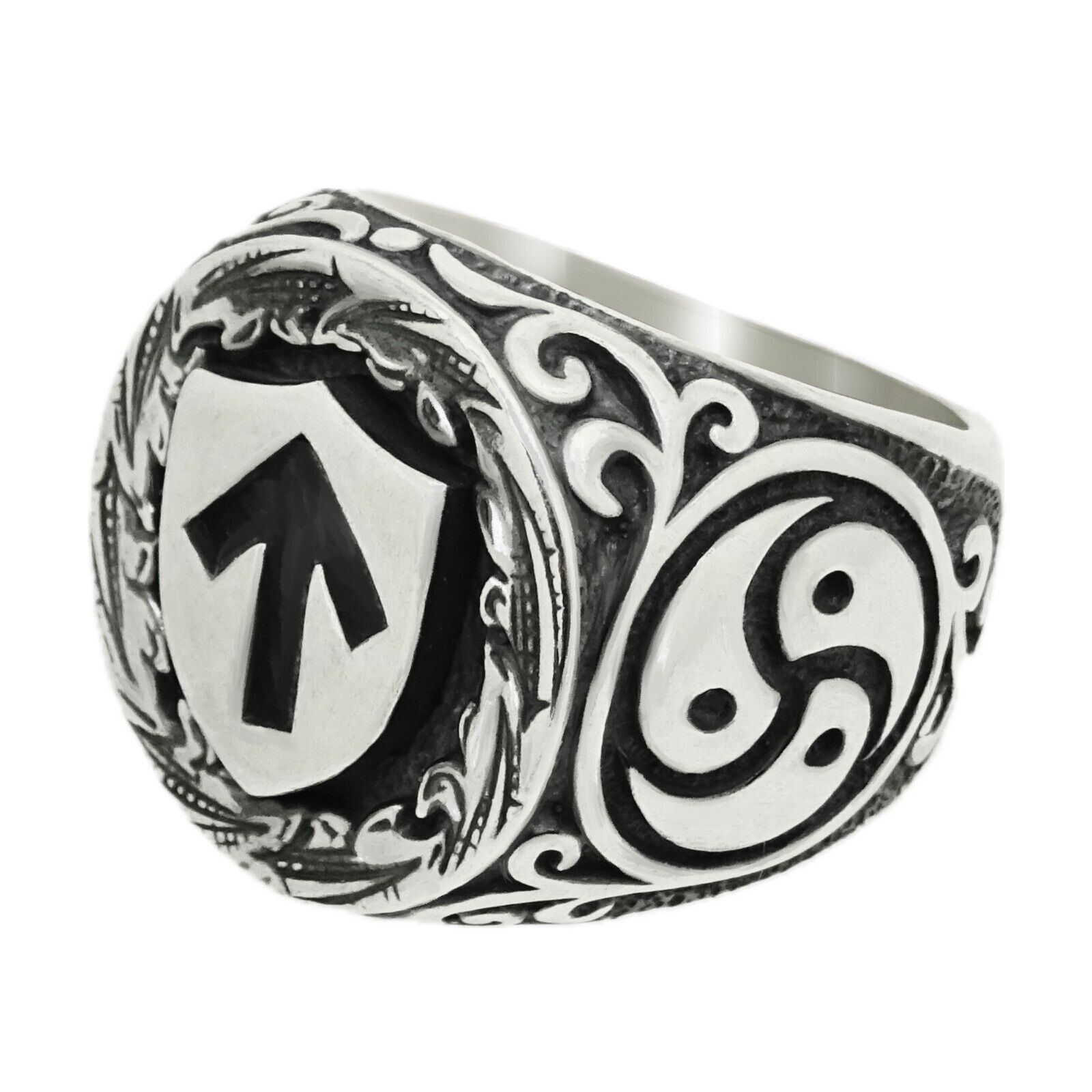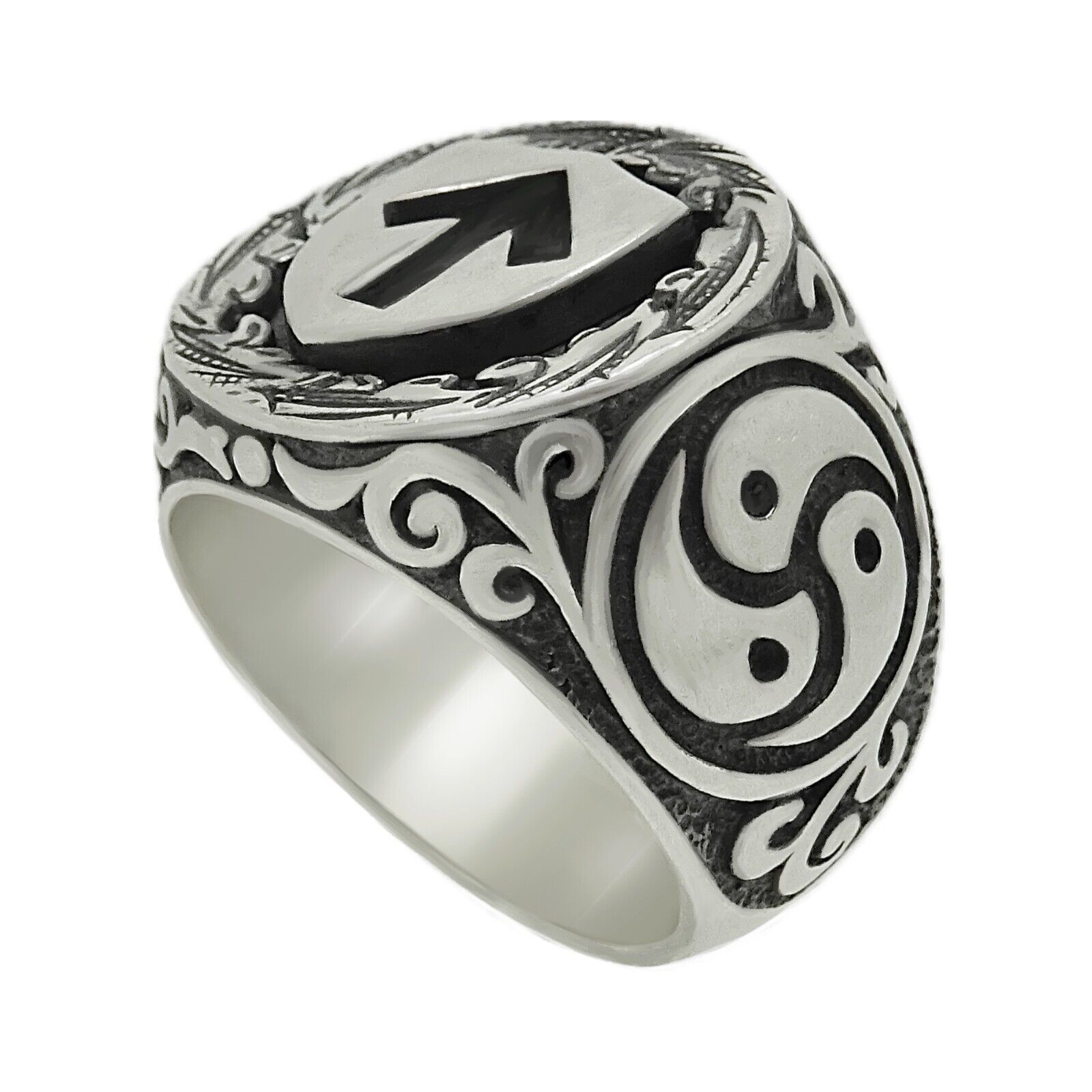 BDSM Shield and Arrow Silver 925 Men’s Woman Ring Owner Dominant Triskele Slave