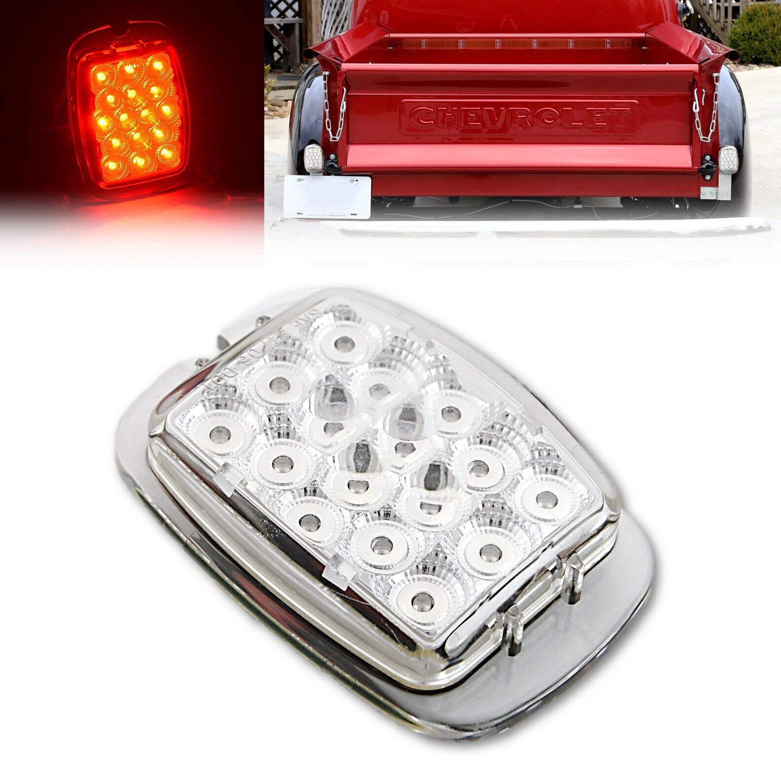 Red LED Tail Brake Light Clear Lens Each for 1940-53 Chevy GMC Truck 37-38 Car