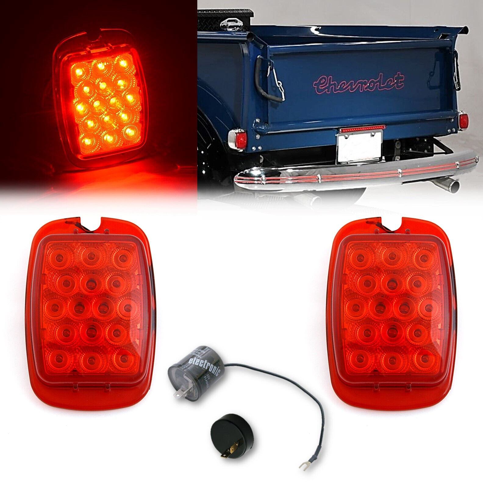 Red LED Tail Brake Light Lens Pair Flasher for 40-53 Chevy GMC Truck & 37-38 Car