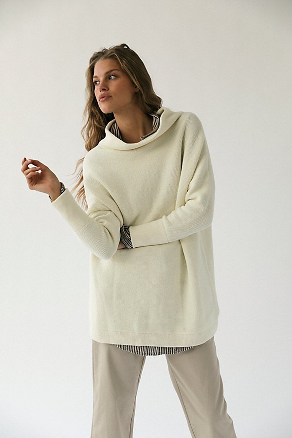 Serve up a sleek look with this Free People Ottoman Slouchy Tunic. Soft rib-knit sweater in a striking solid colorway. Mock neck. Long sleeves. Straight hemline. 72% cotton, 26% nylon, 2% spandex. Hand wash cold, dry flat. Imported. Measurements: Length: 31 in Product measurements were taken using size SM (Womens 4-6). Please note that measurements may vary by size.