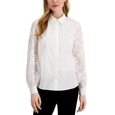 Alfani Lace-Sleeve Button-up Shirt and similar items