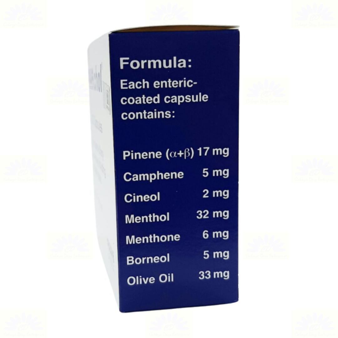 Each Capsule contains; Menthol 32 mg Menthone 6 mg Alpha Pinene 13.6 mg Beta Pinene 3.4 mg Borneol 5 mg Camphene 5 mg Cineol 2 mg Olive Oil q.s. add to 100 mg