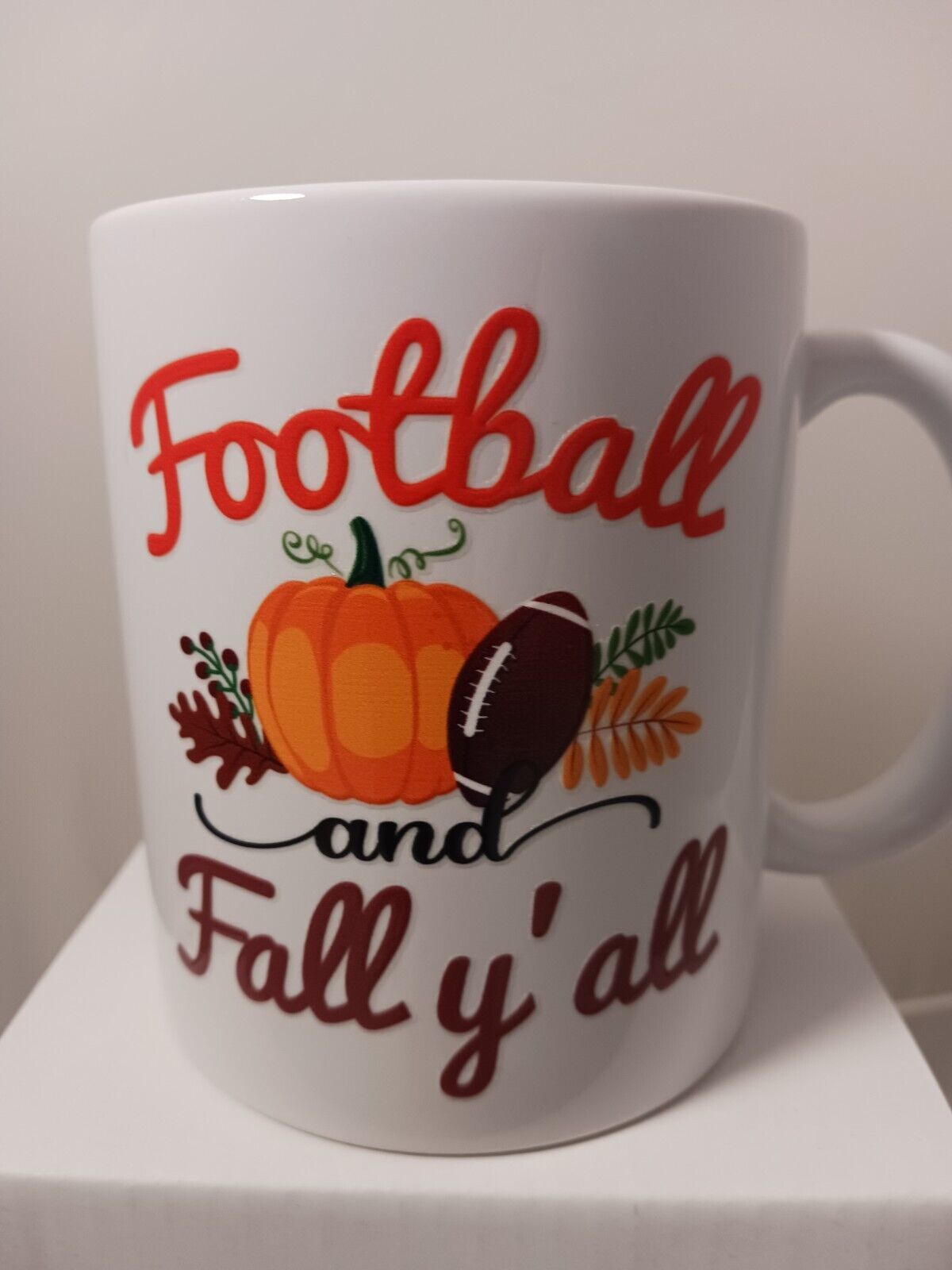 White Coffee Mug UV DTF Sticker Applied, 11oz, Football and Fall Y'all