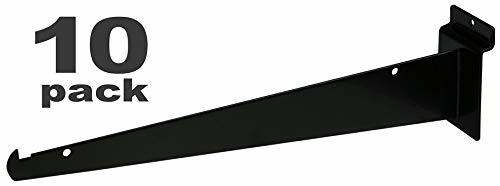 Use slatwall 12? black shelf brackets to support shelves of wood, plastic or glass on slatwall panels. This set consists of ten heavy-duty metal shelving braces designed to fit standard slatwall merchandising fixtures. Our shelf brackets feature an upturned notch at the tip to allow for a secure fit. Sold in a case of (10) black slatwall brackets.
