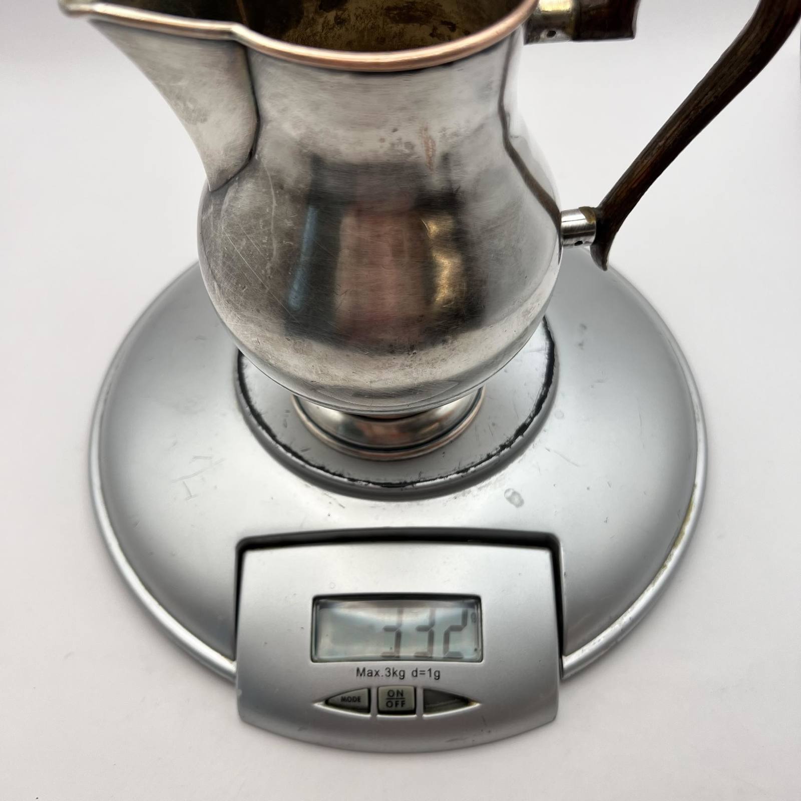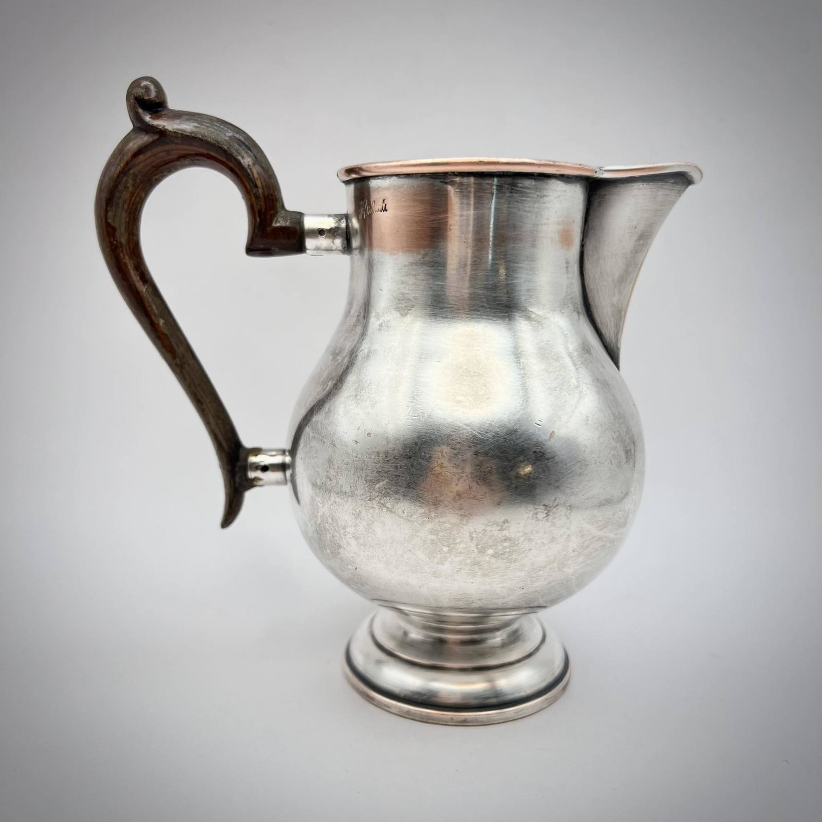 Antique Brass Silver Plated Creamer Jug Pitcher Handle Wood Server Marked Collectible