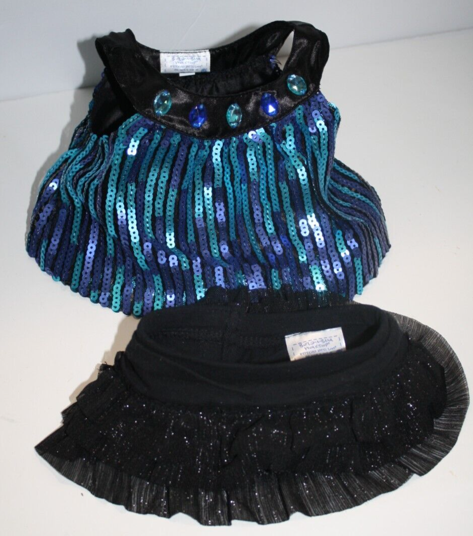 Build A Bear Clothes Blue Purple Sequin Shirt Black Ruffle Skirt BAB 2 Pc Outfit