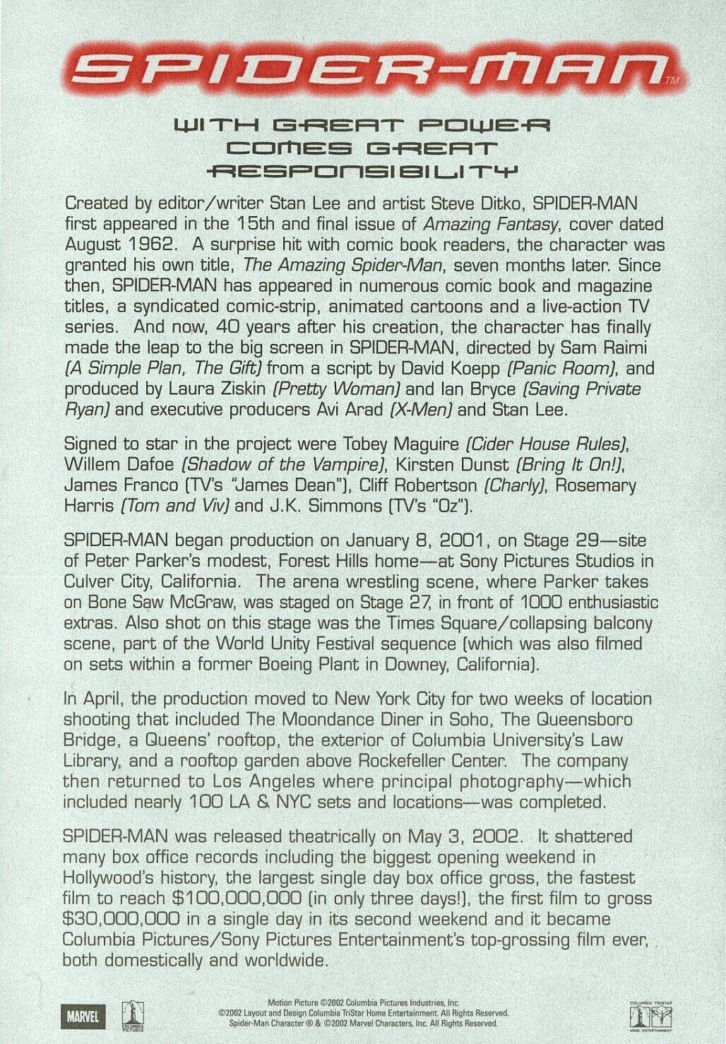 Also included is the DVD Stan Lee's Mutants, Monsters Marvels which contains an in-depth interview with Stan Lee by Kevin Smith and the two features "Creating Spiderman" and "Here Come The Heroes", plus many extras.