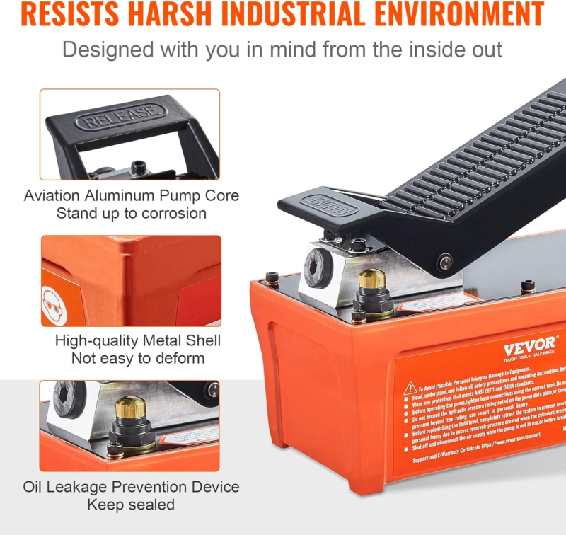 One Step Is All It Takes: Our foot operated air/hydraulic pump is equipped with hydraulic oil, eliminating the need for any additional purchases. It is ready to use straight out of the box! The user-friendly foot-actuated design makes operation more labor-saving. Simply apply pressure by gently stepping on it, and release pressure by rebounding back.