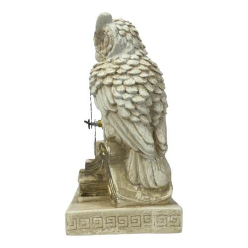 Hibou de la deesse Athena symbole de sagesse horloge de table grecque en fonte sculpture statue