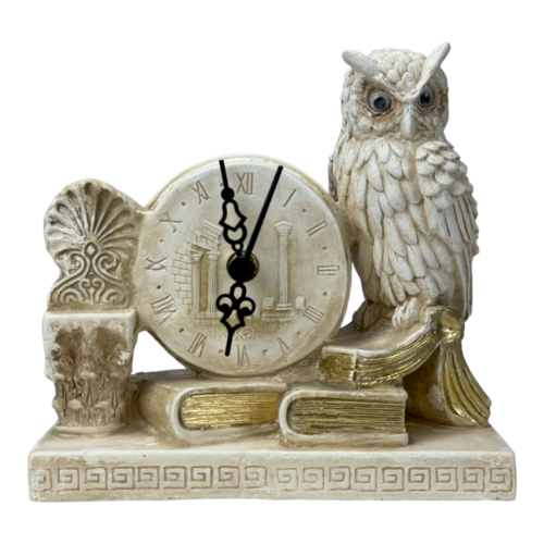 Hibou d'Athéna symbole de sagesse horloge de table grecque en fonte...