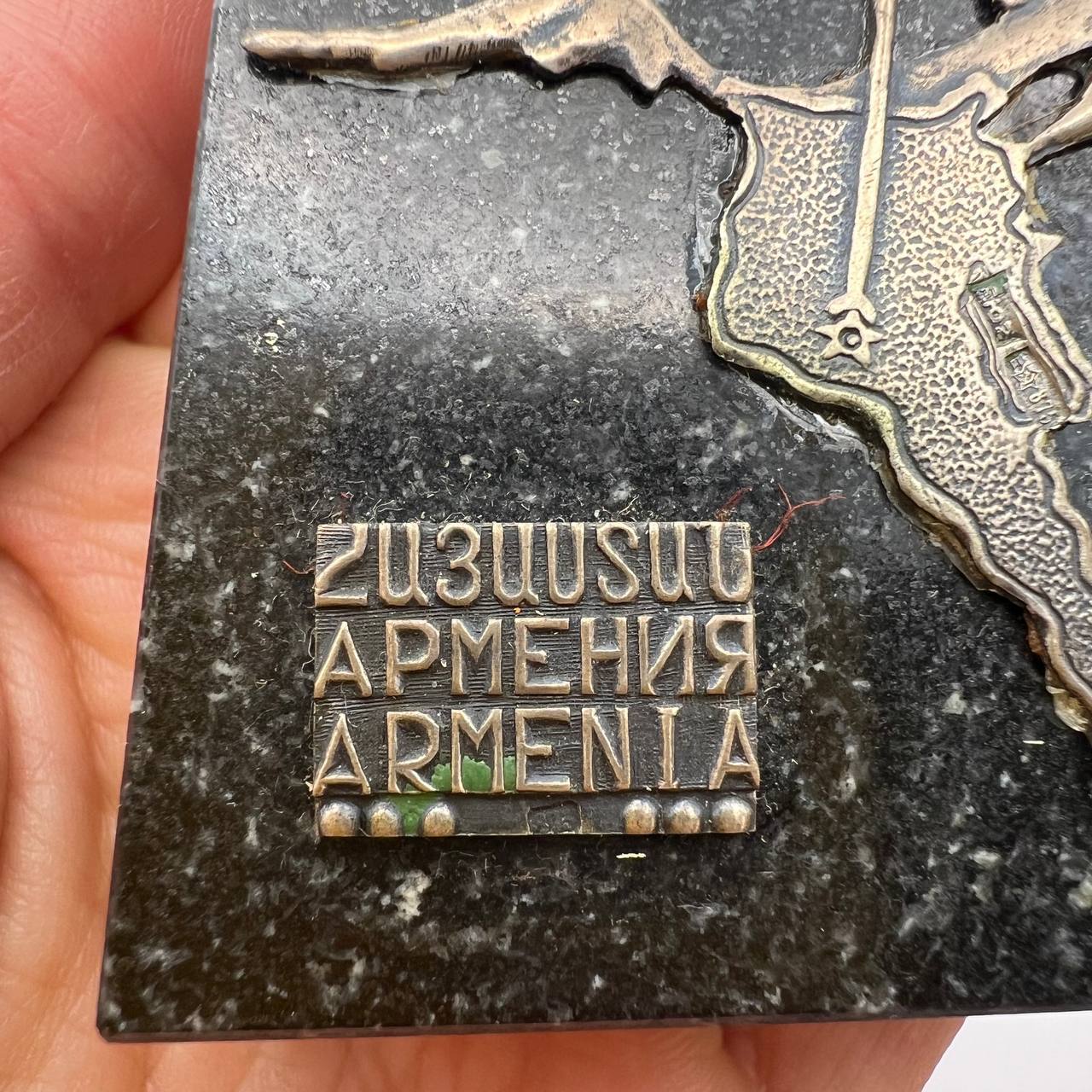 Vintage Statue Soviet USSR Souvenir Granite Stone Sterling Silver 875 Armenia