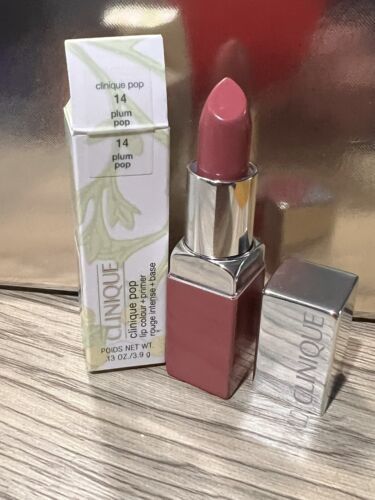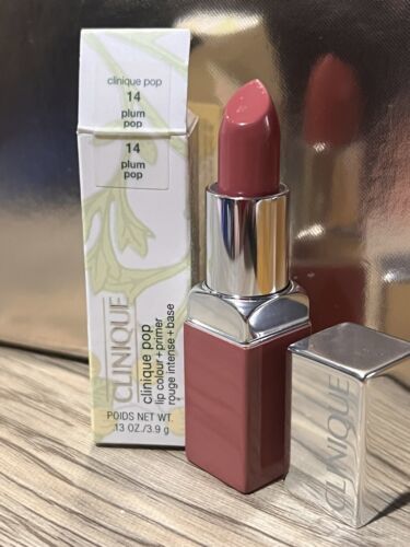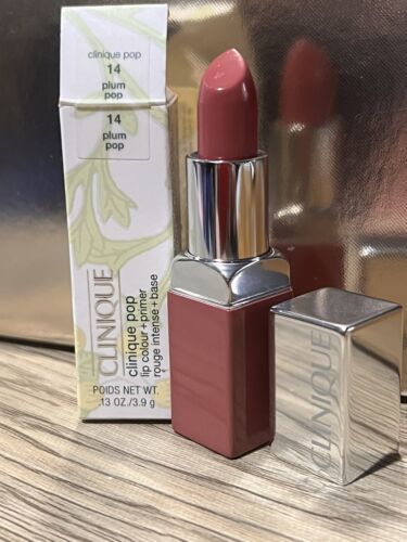 Clinique Pop Lip Colour + Primer Rouge Intense + Base 14 Plum Pop 0.13 oz NIB.