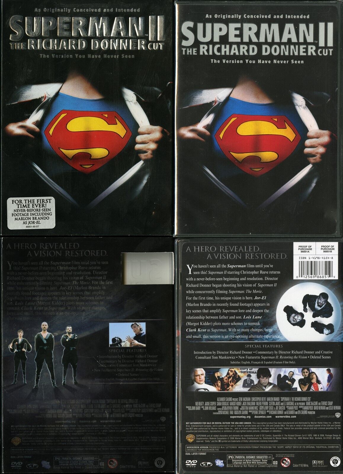 SUPERMAN II DONNER CUT DVD MARGOT KIDDER WARNER VIDEO SLIPCOVER NEW