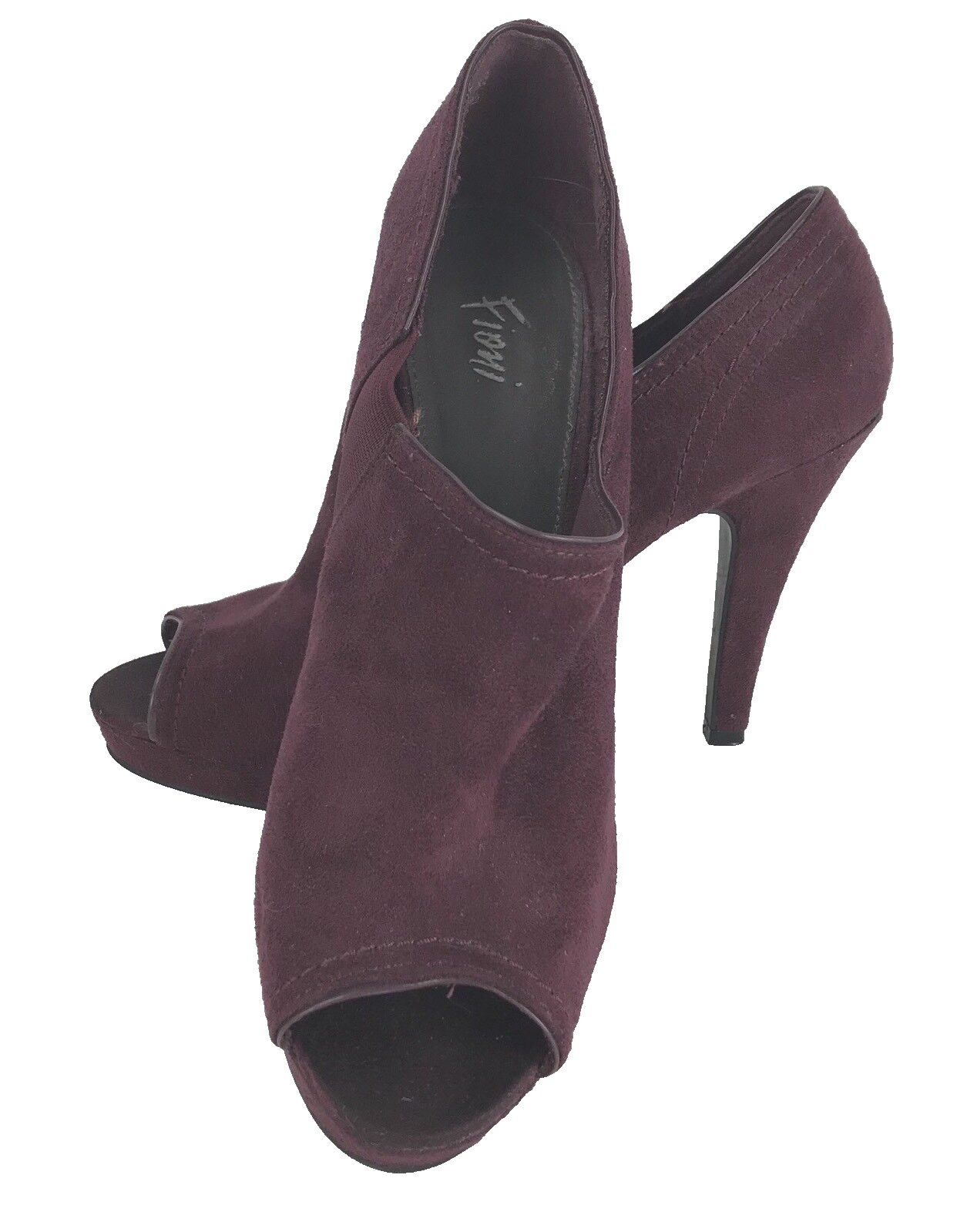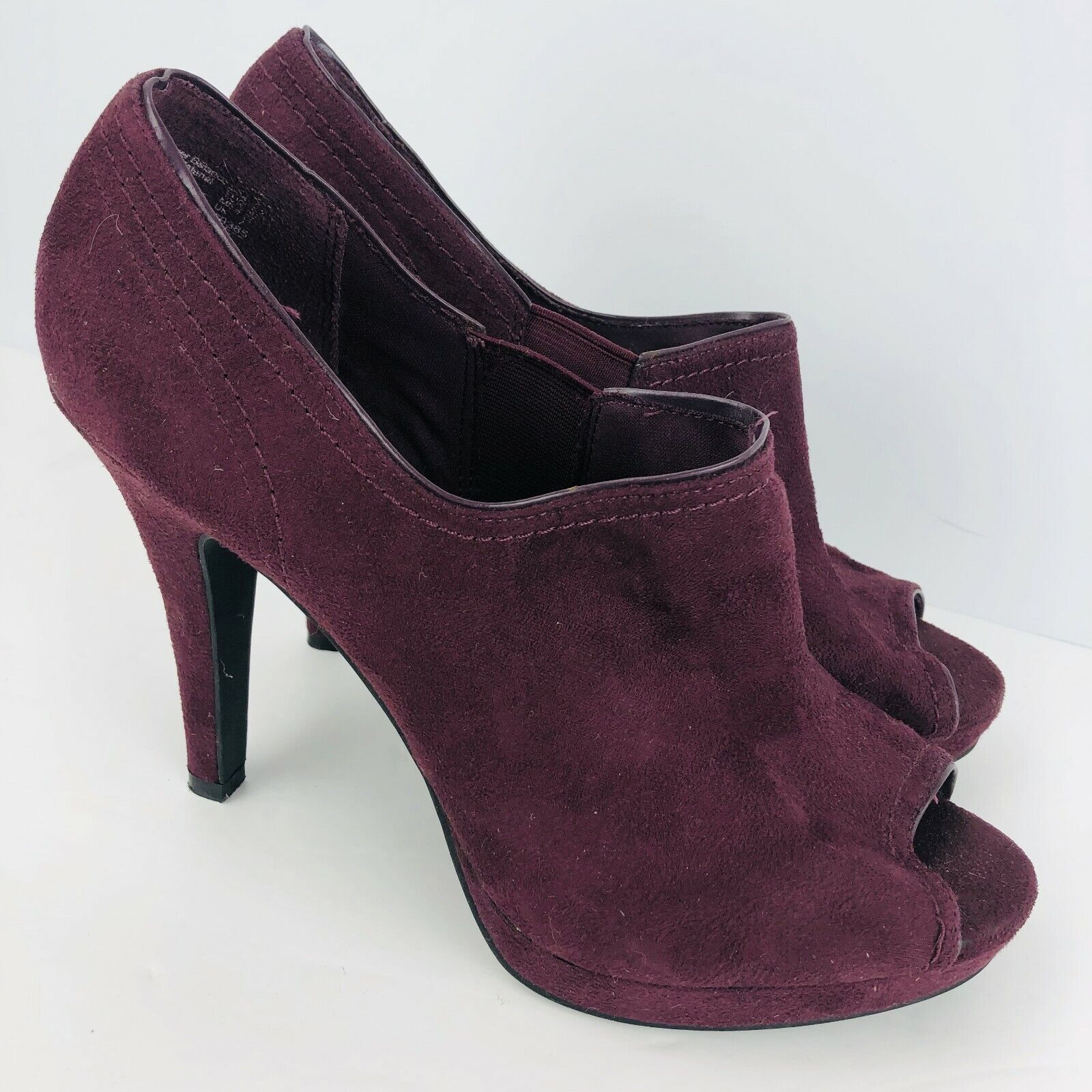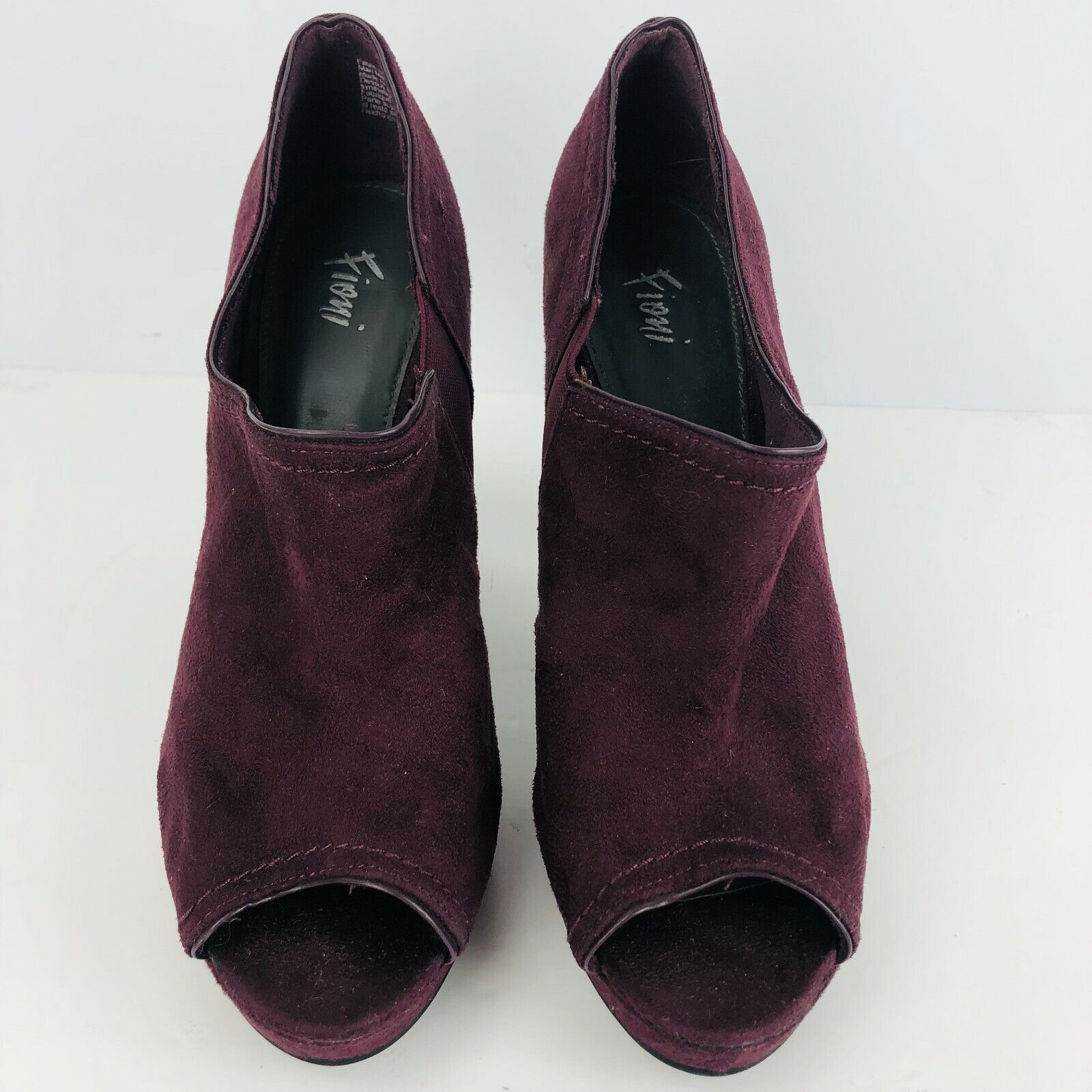 Fioni Burgundy Suede Pumps Size 8.5 Open Toe Heels Booties Platform Shoe