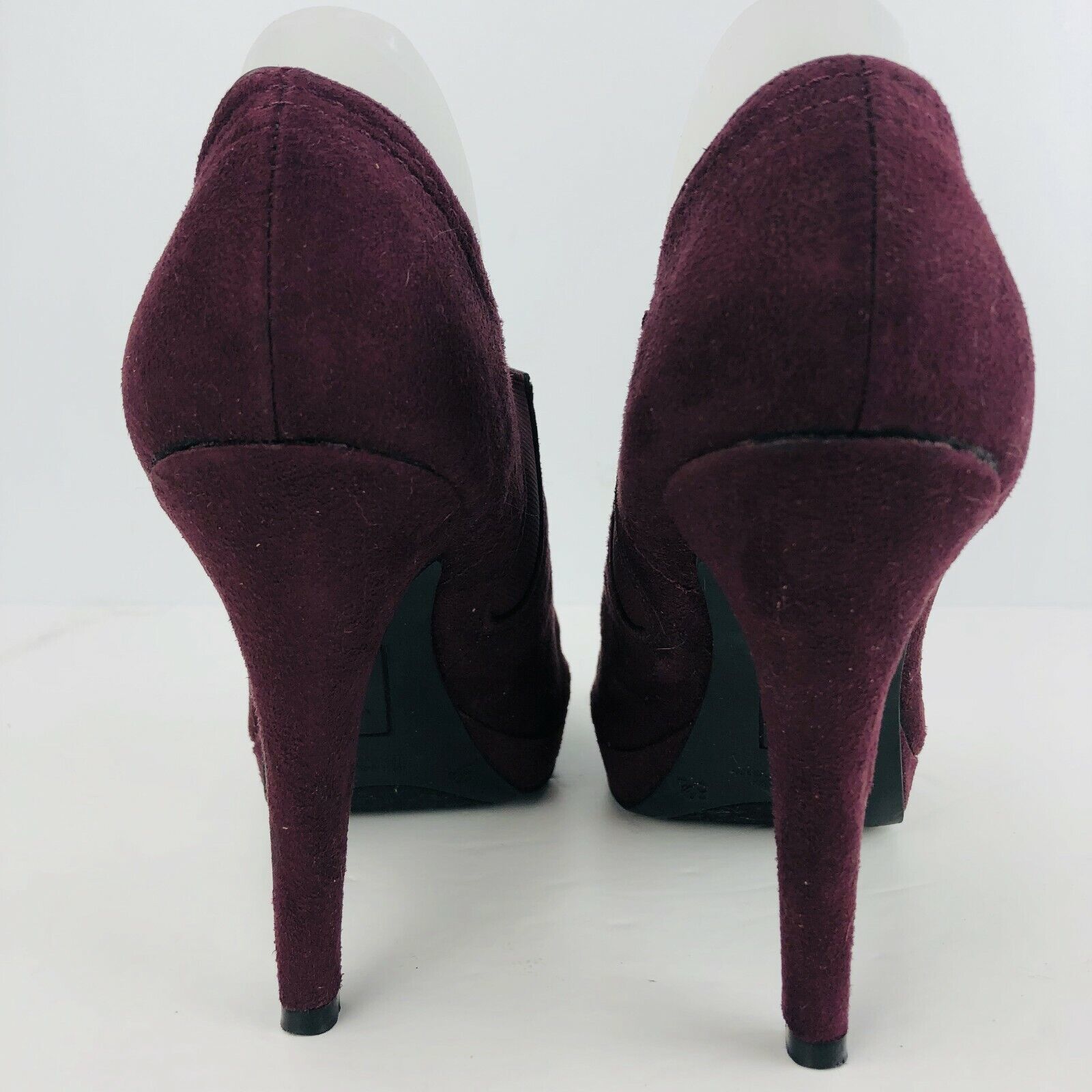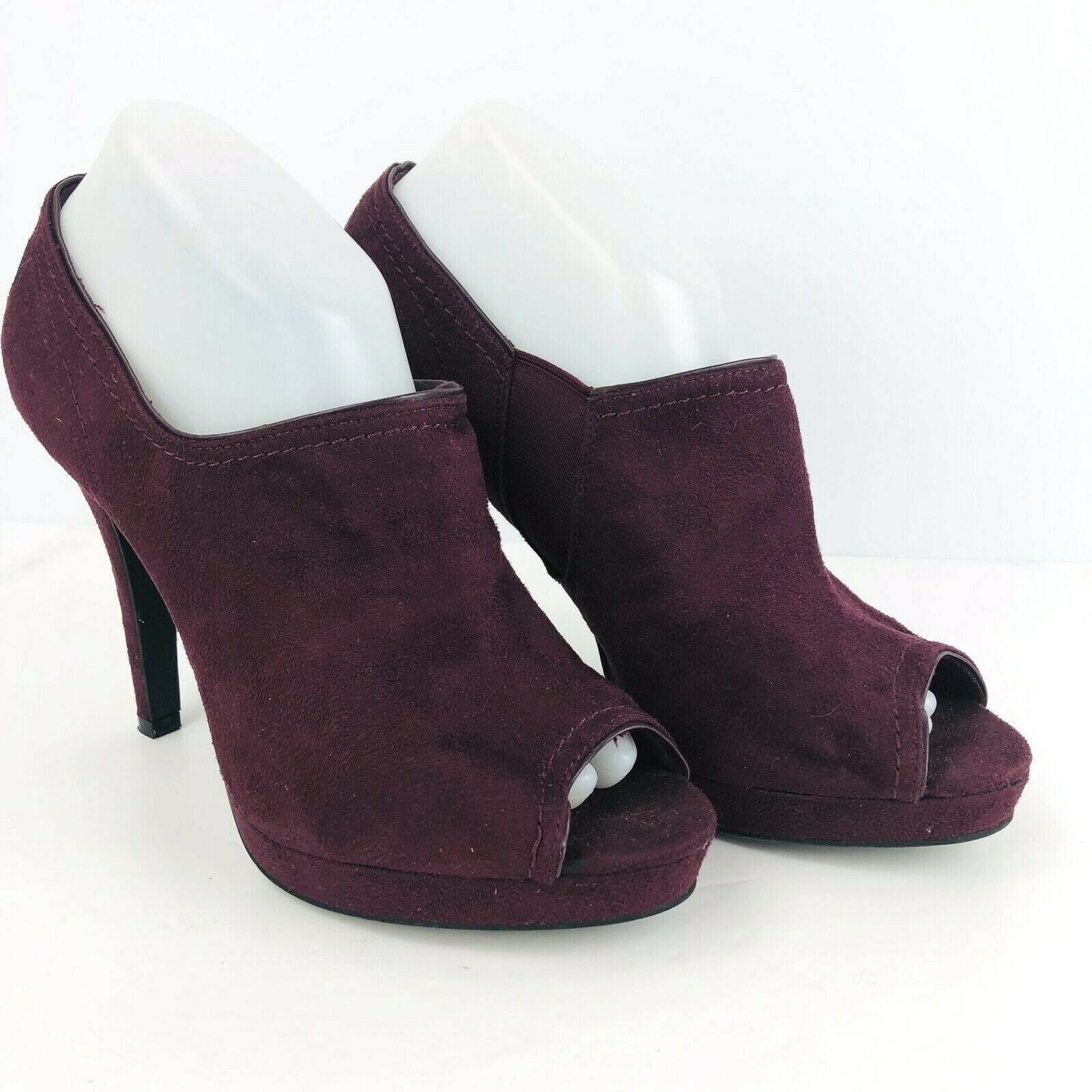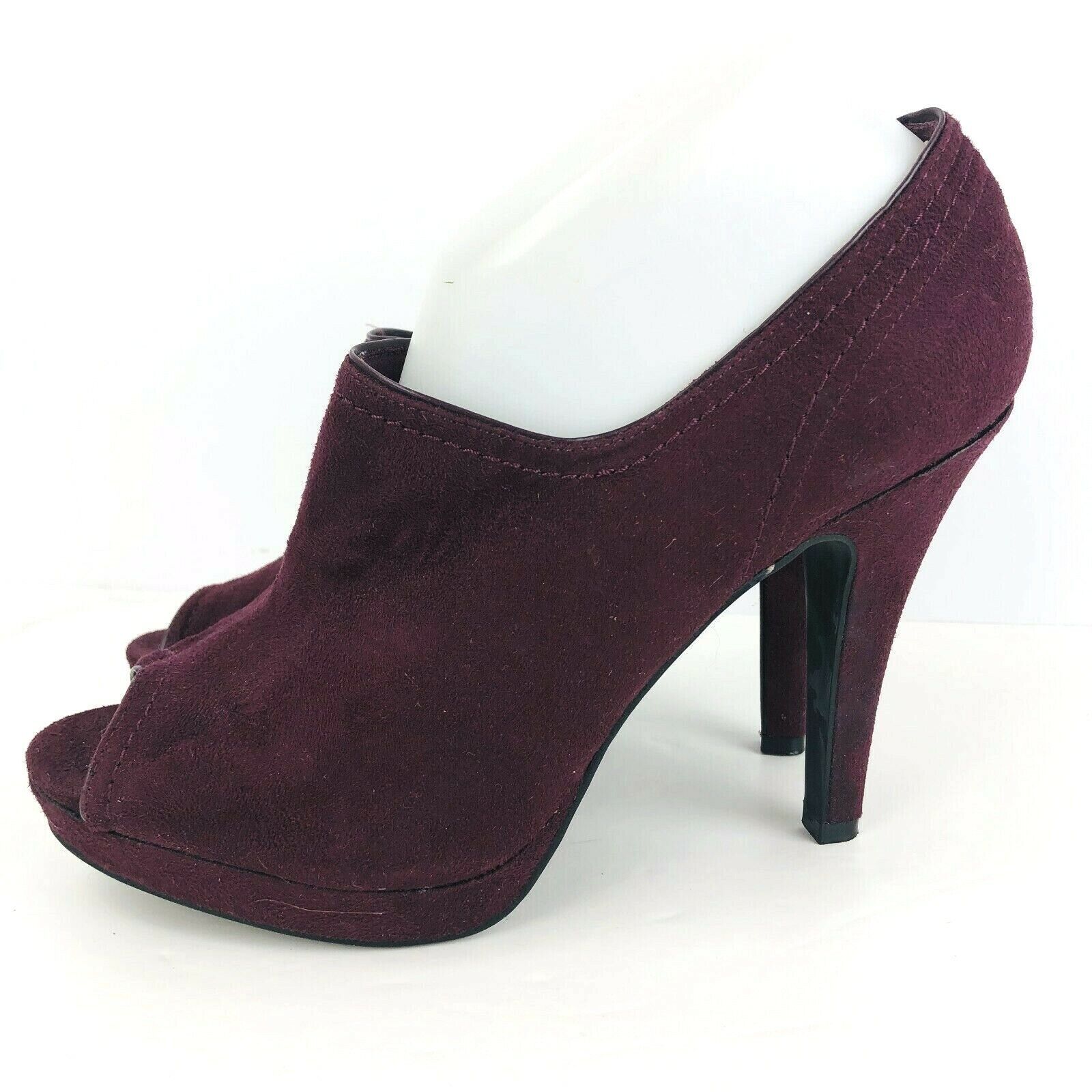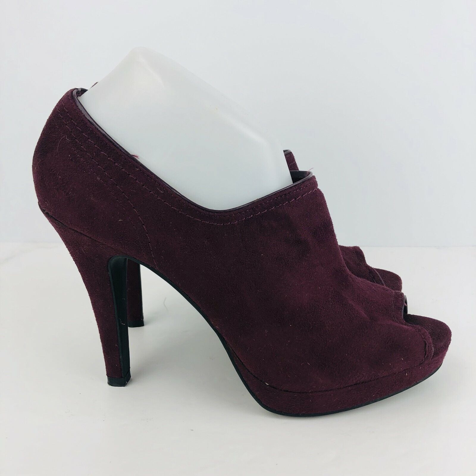 Fioni Burgundy Suede Pumps Size 8.5 Open Toe Heels Booties Platform Shoe