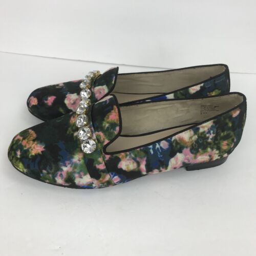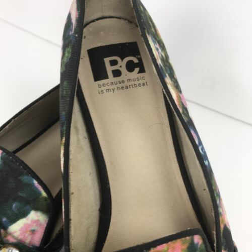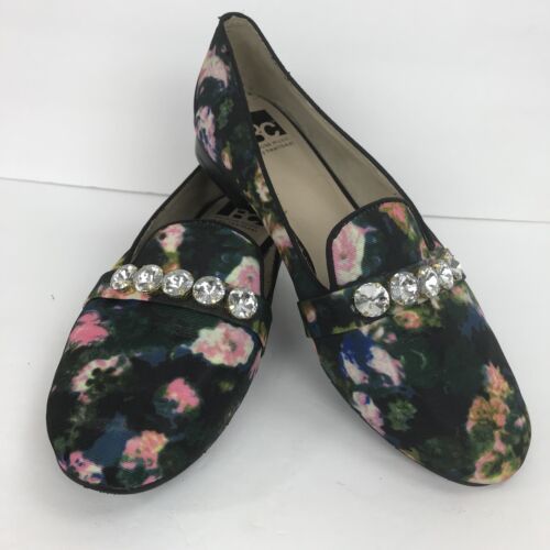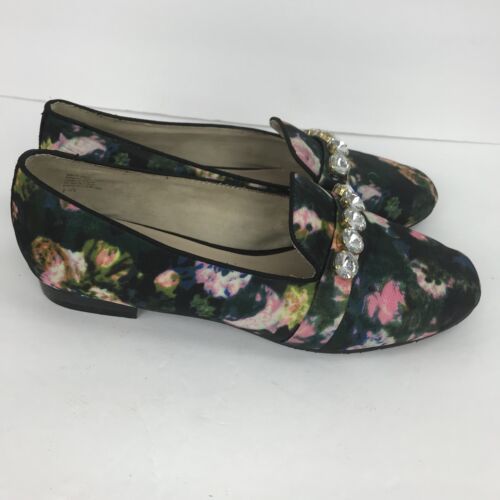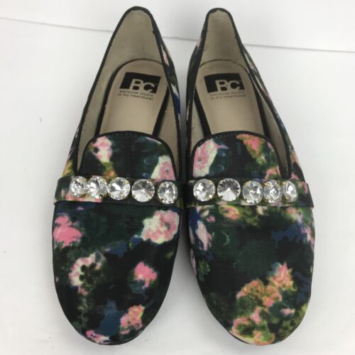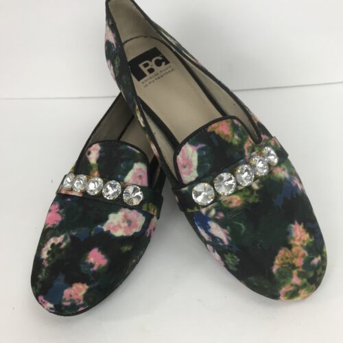 BC Embellished Floral Flat Vegan Loafer Multi Color Shoes Size 7.5 Black Pink