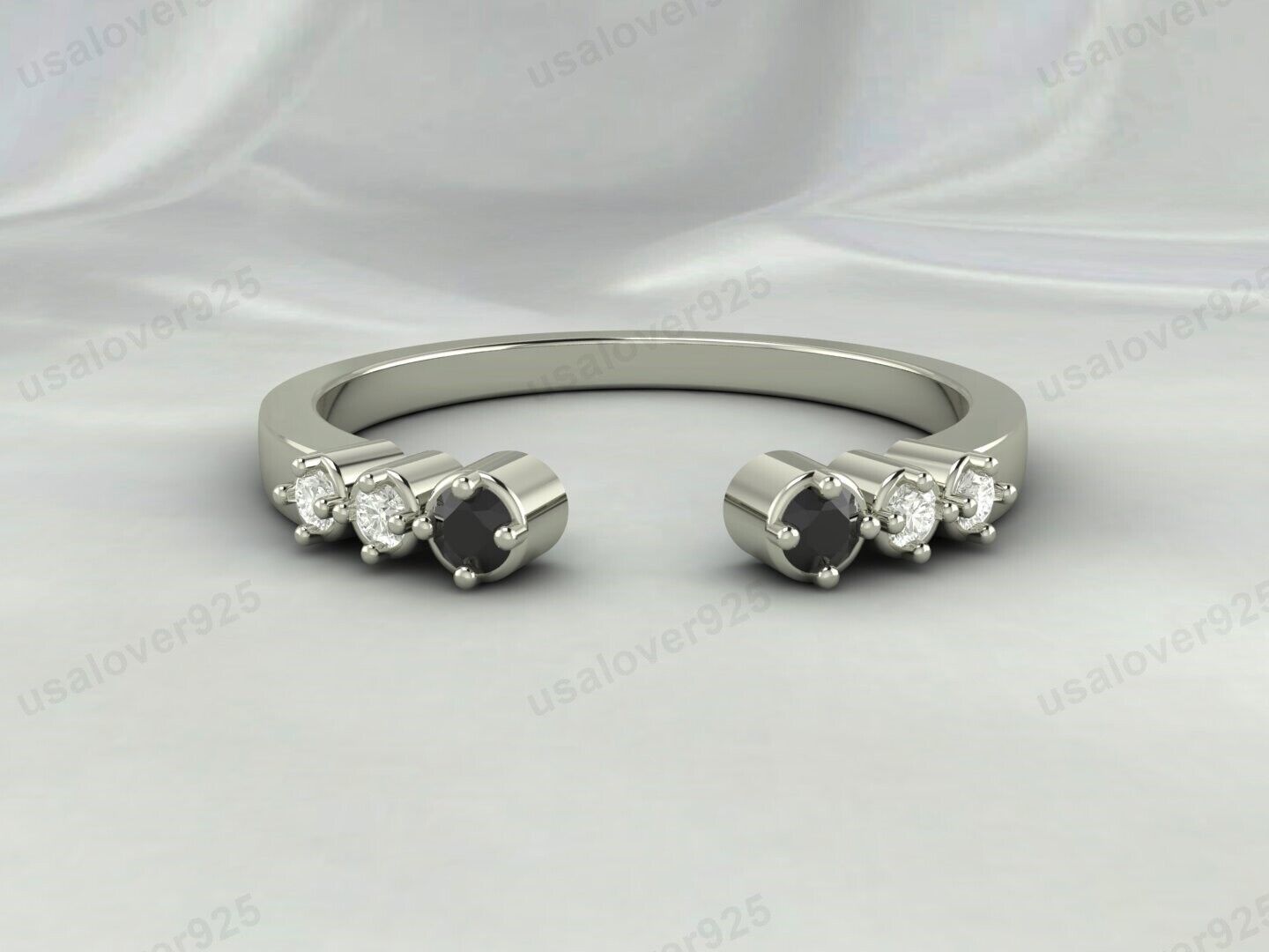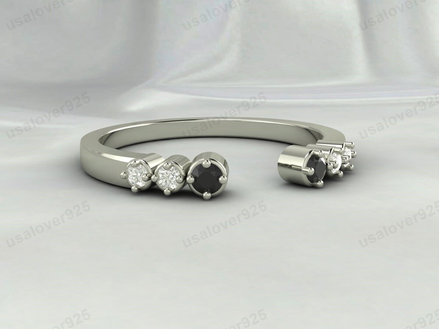Onyx Gemstone Open Band Ring 925 Sterling Silver Handmade Dainty Women's Jewelry