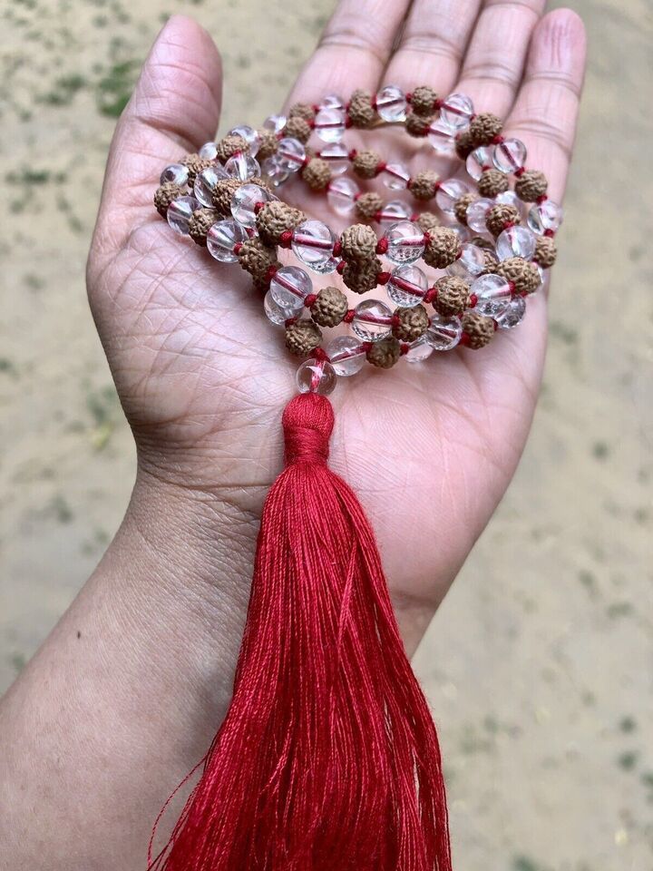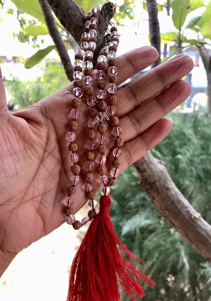 2 Pezzi - 5 Mukhi RUDRAKSHA Rudraksh + Cristallo Quarzo Mala ROSARIO 108 +...