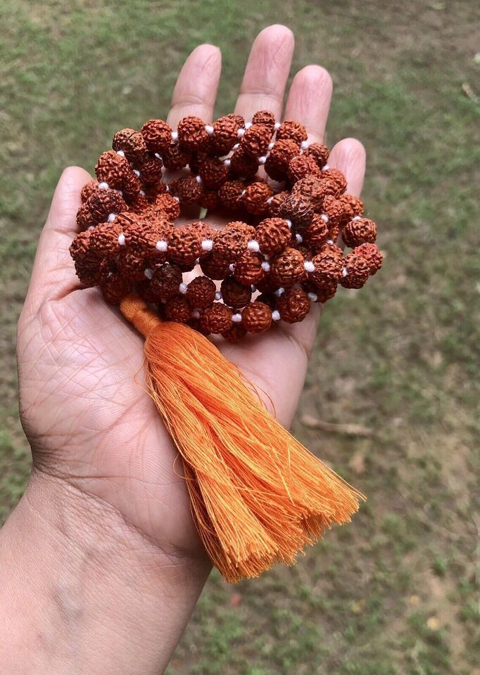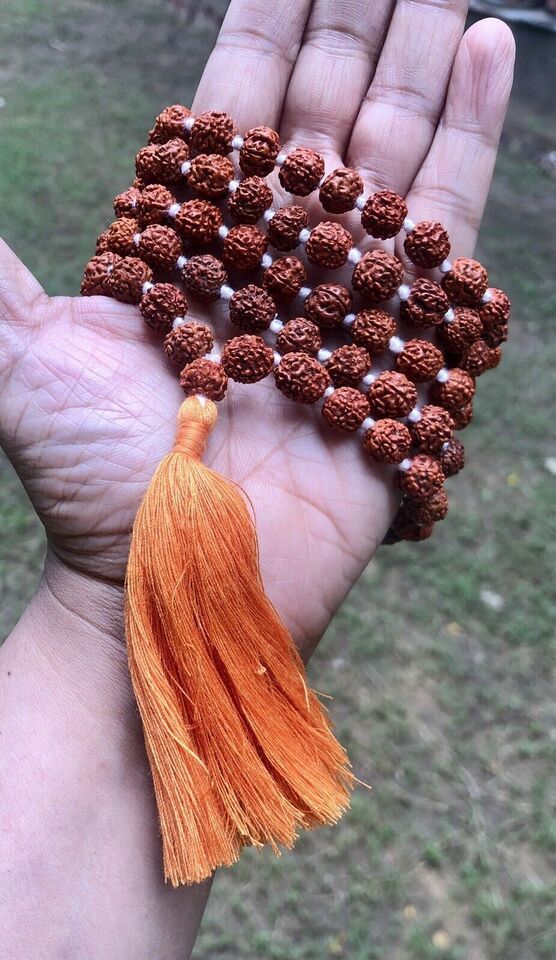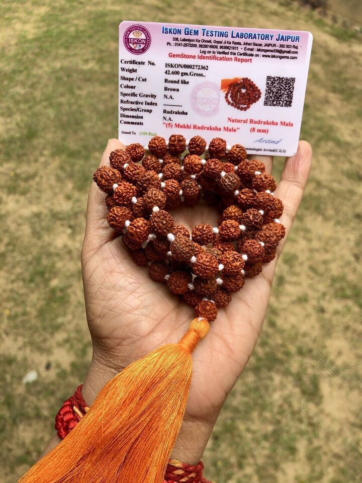 CERTIFICATO LABORATORIO 108+1 Bead Origine Indiana Rudraksha Mala 5 mukhi 5 volti Rosario di Lord Shiva Jaap Mala Yoga Preghiera Meditazione Guarigione