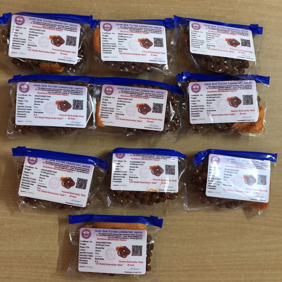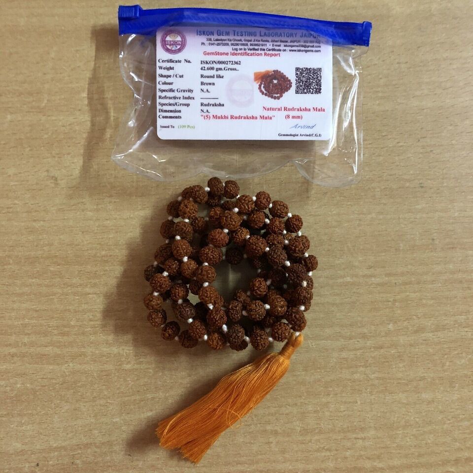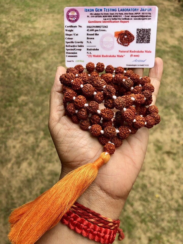 2 Pezzi CERTIFICATO IN LABORATORIO 5 Mukhi RUDRAKSHA Rudraksh Mala ROSARIO...