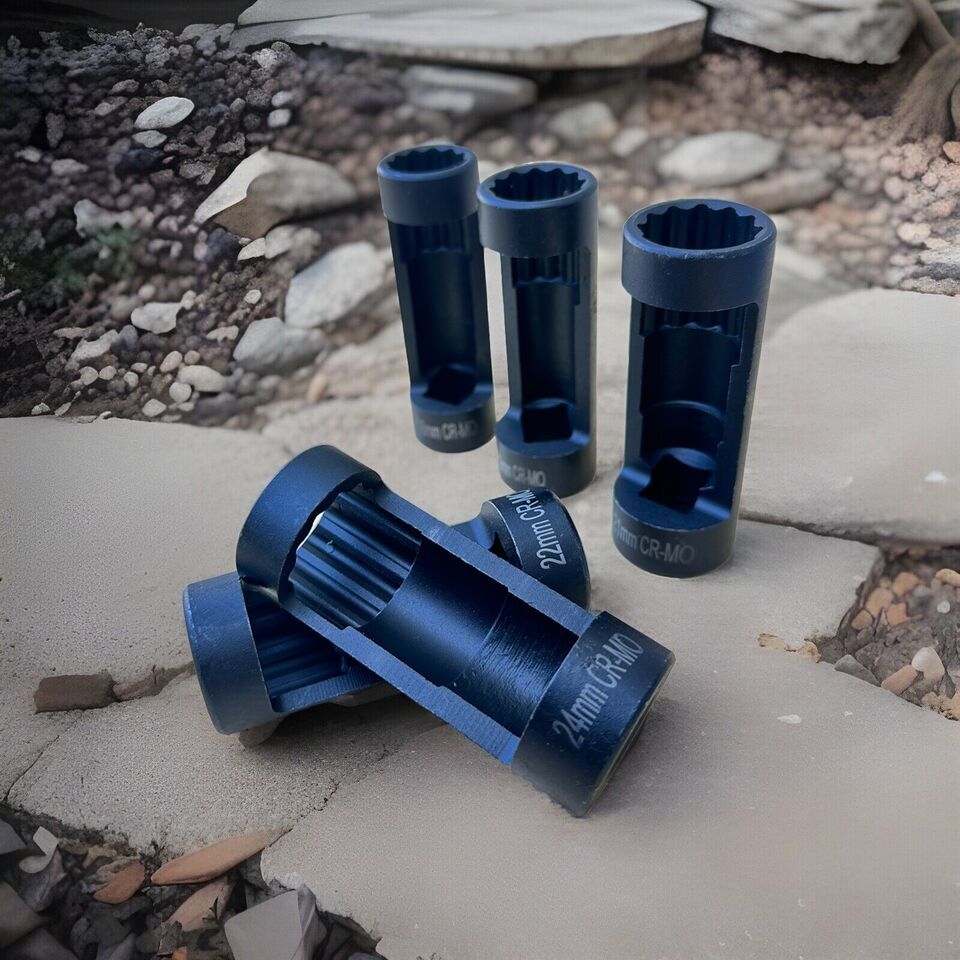 Specification: 5PC strut nut socket with 12 point design, 1/2" square drive slot, and a length of 3.1 inches. Various sizes (18mm, 19mm, 21mm, 22mm, and 24mm) to fit many different vehicles.