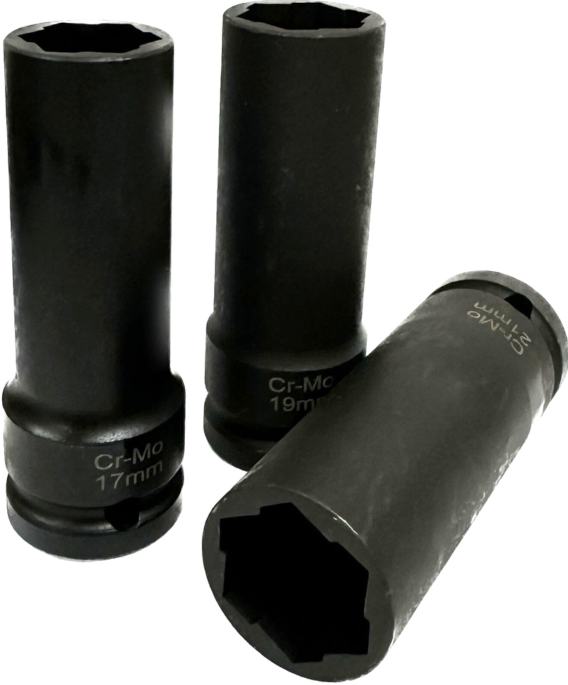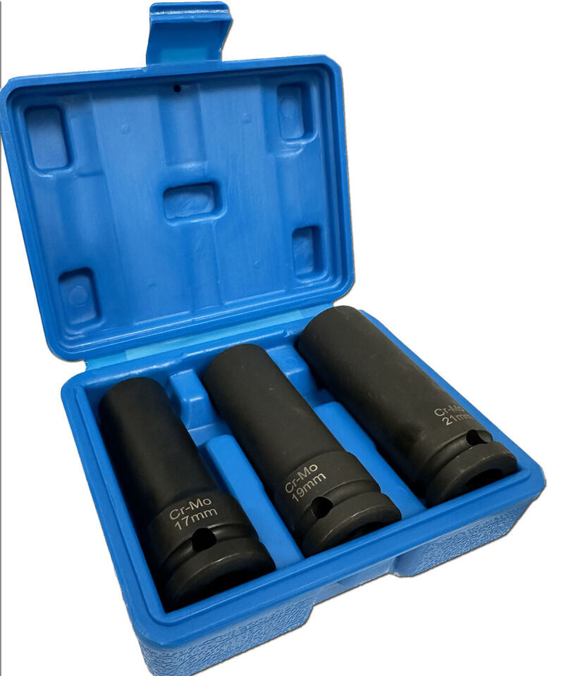 3pcs 1/2" Dr. Damaged Wheel Lug Nut Removal Impact Socket Cr-Mo 17mm 19mm 21mm