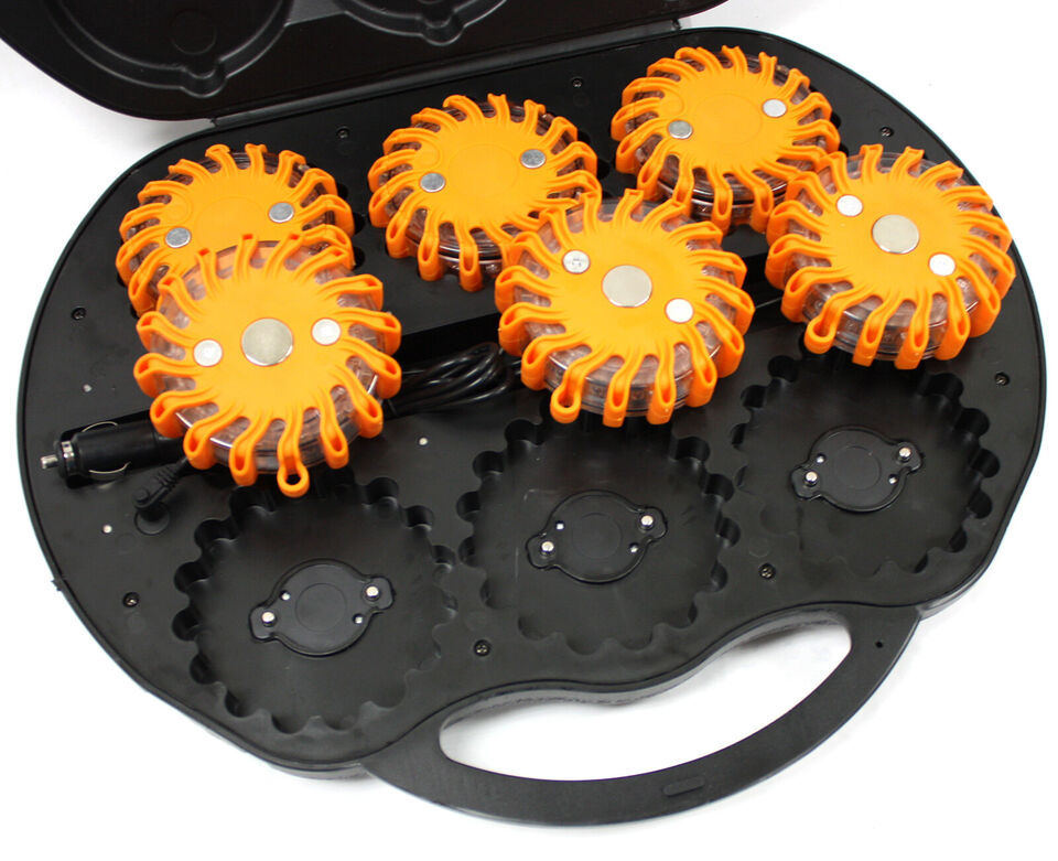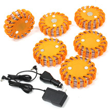 Lot 6 Rechargable LED Safety Flare Emergency Warning Disc Light Roadside Beacon