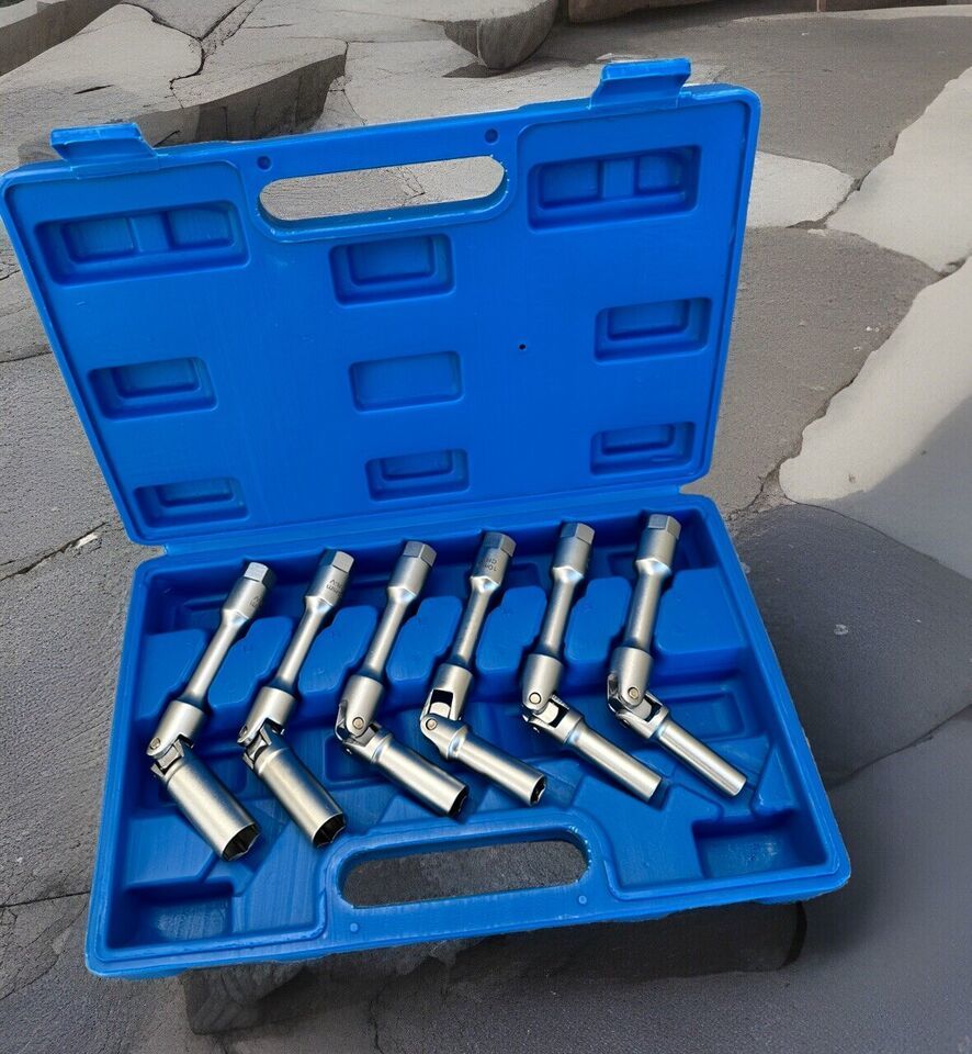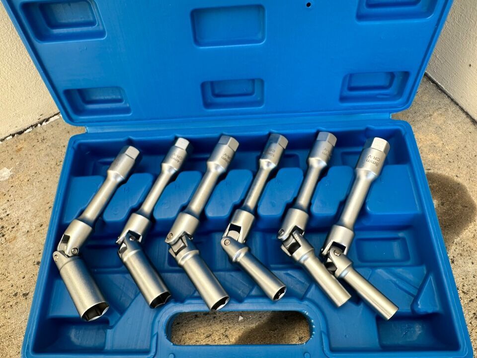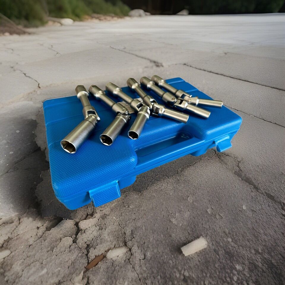6pcs 3/8" Dr. Extra Long Universal Joint Swivel Glow Plug Spark Plug Socket Set