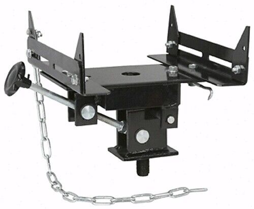 The adapter provides 60-degree-forward and 10-degree-reverse tilt, and its ?feet? slide to accommodate your transmission sides. It comes with a single safety chain that you tighten with a screw hook.