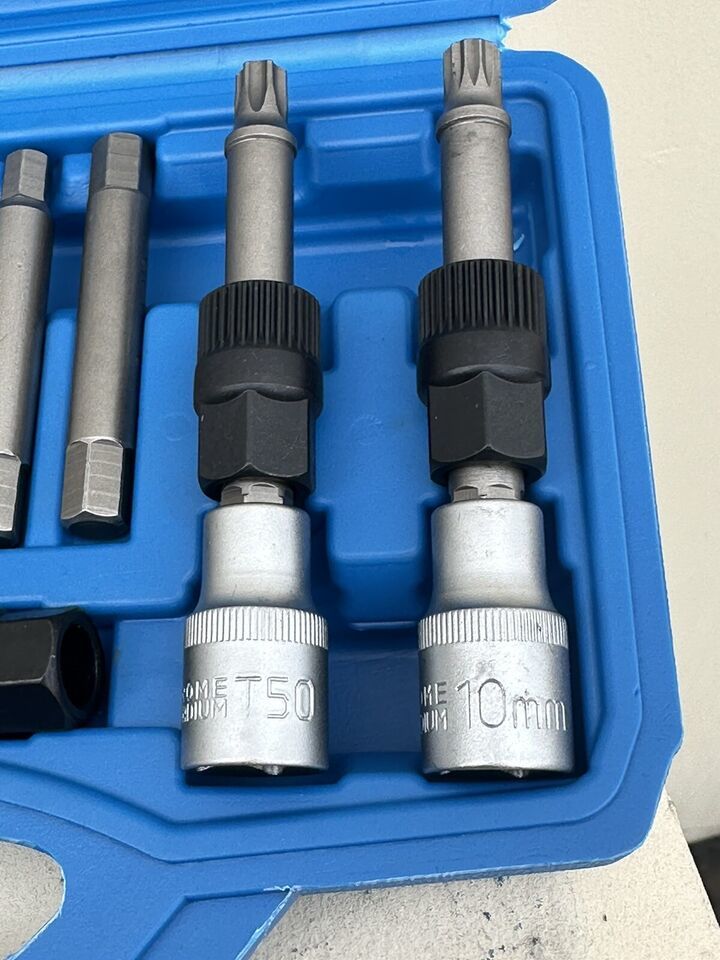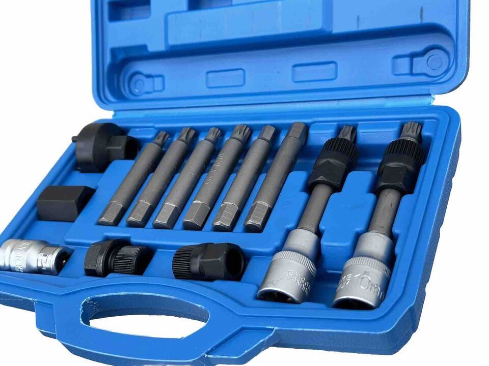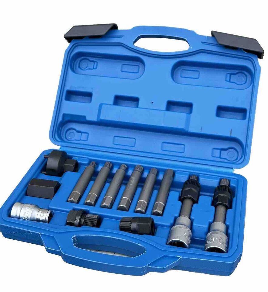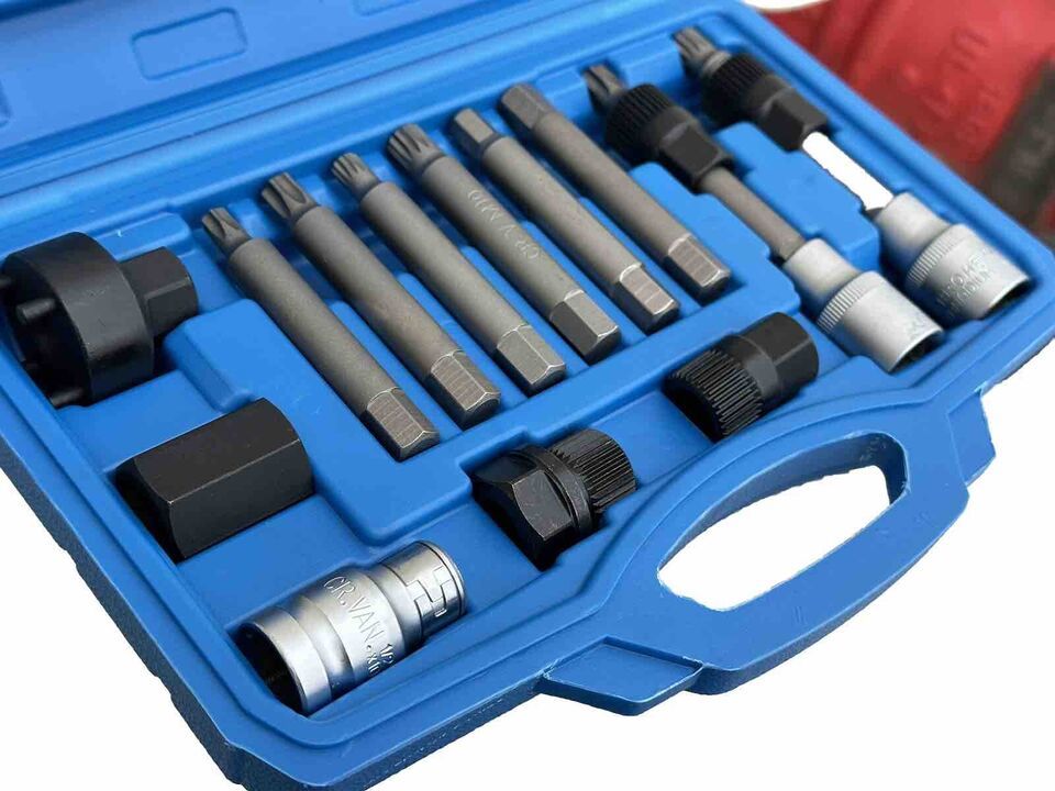 Special set of Spline Torx socket bits for the removal of Bosch type alternator free-wheel drive pulleys.
