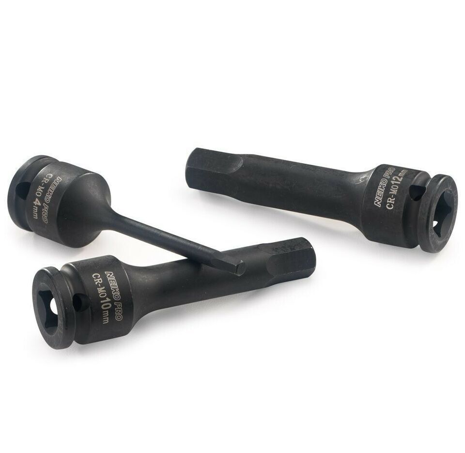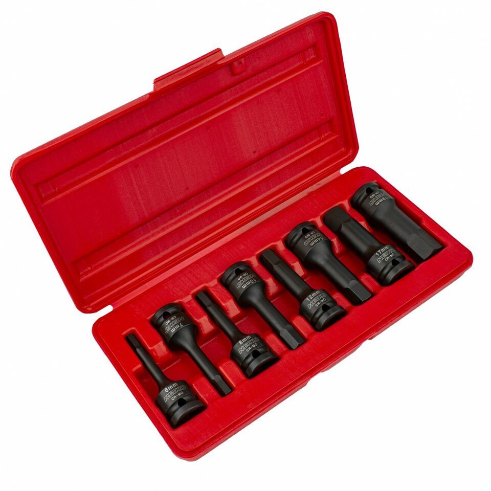 7pc Metric 3/8" Drive Long Impact Hex Socket Bit Set 4, 5, 6, 7, 8, 10, 12mm