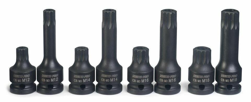 Neiko 8 pc 1/2" Drive XZN Triple Square Spline Driver Impact Socket Set 10283B