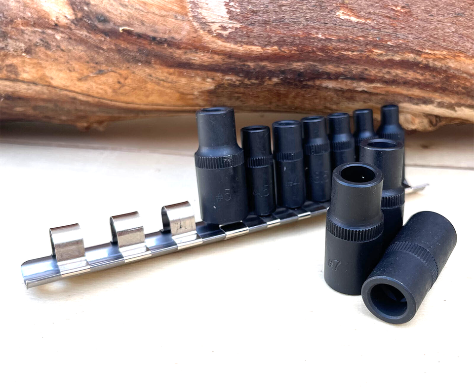 4pcs 3/8" drive magnetic sockets(length:40mm)- socket number to square size: #5 (6.4mm), #6 (7.3mm), #7 (7mm), #8 (8.4mm)