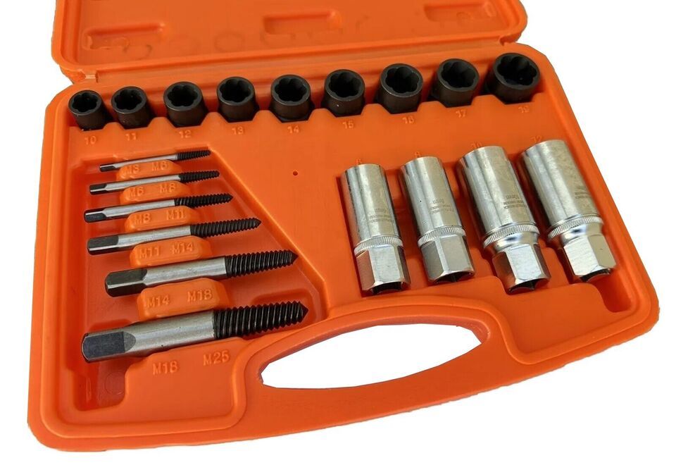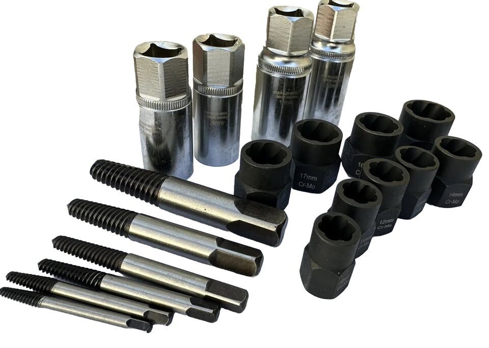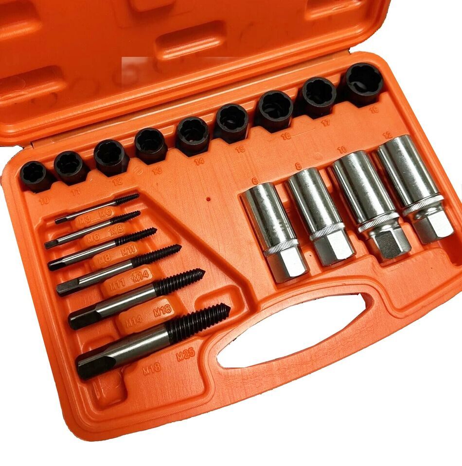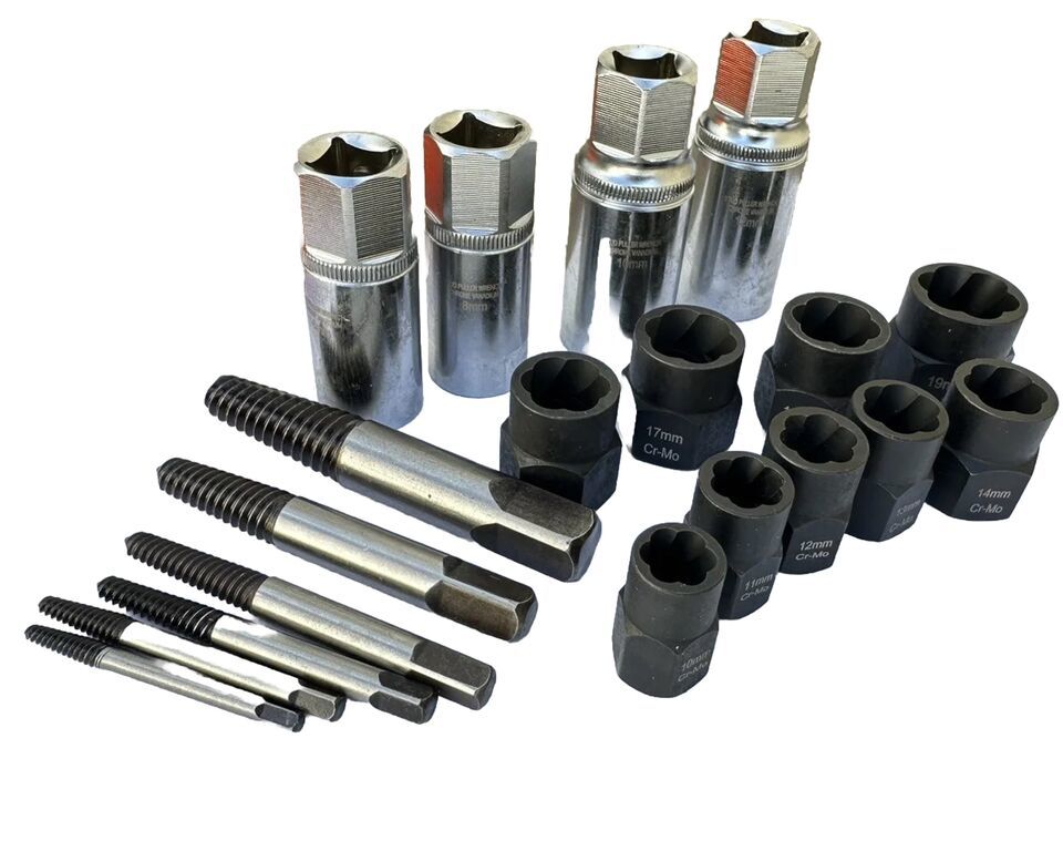 This 19-piece set is perfect for Removing Damaged, Rusted, Rounded Bolts, Nuts and Screws with ease. This bolt removal and screw extractor bit and twisted socket set includes a variety of sizes to fit any need.