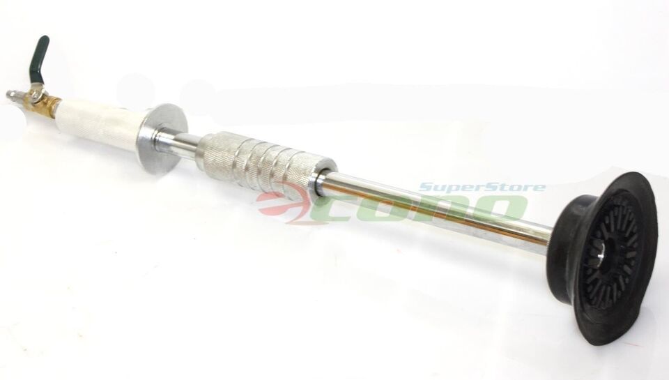 Feature : 1).21-1/4in. steel dent puller has a 3-lb. sliding hammer, 4.56" and 6" Suction Cup, brass shutoff valve. Through-handle exhaust directs exhaust safely away from user. 2).Get the power and versatility of a slide hammer without marring the finish by welding or drilling body panels. Pneumatic control creates a super-strong vacuum, making it easy to pull most dents out of panels.