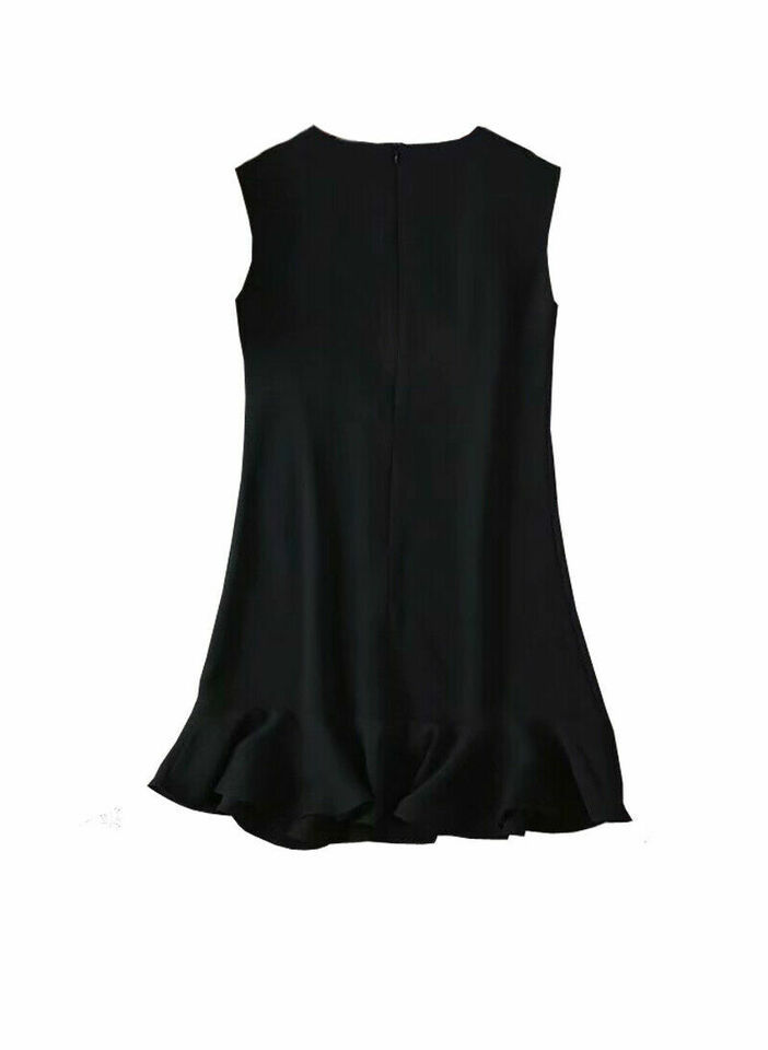 Women's Celebrity Sleeveless Shift Dress with Ruffle Hem in Black AUS STOCK 8 10
