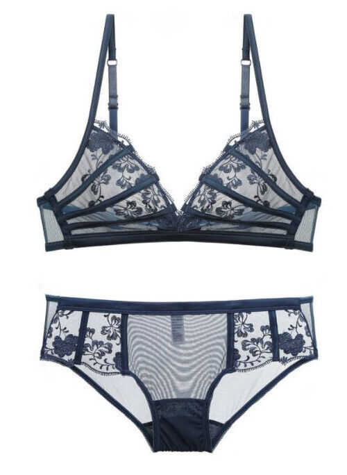 At a distance, this lace mesh bralette is sultry and sweet - but wait, what's that? Upon 'claw-ser' inspection, this sexy number reveals floral embroidery. Finished with delicate straps and a scalloped hem, this sheer piece is pretty 'paw-some', if we do say so ourselves. Unlined Deep Plunge. Wireless. Double row hook and eye closure. Fully adjustable straps. Matching bra panty. Scalloped hem trim. 3/4 Cup.