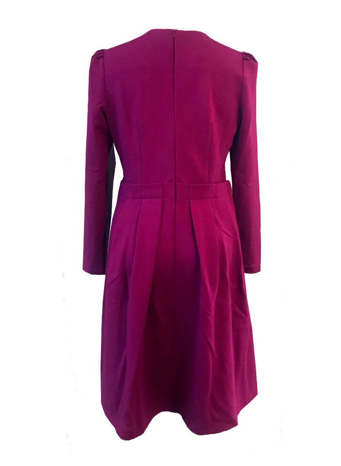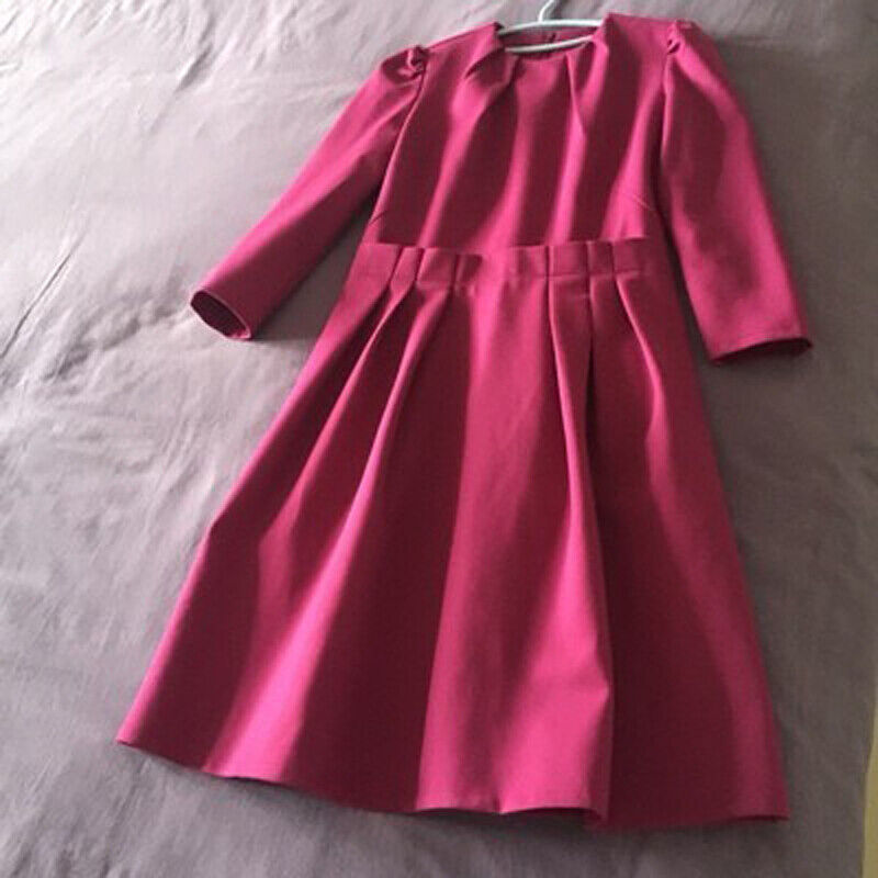 Kate Middleton Inspired Raspberry Pink Puff Sleeve Pleated Midi Flare Dress AU10