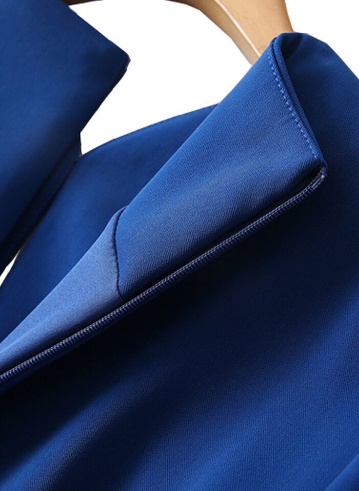 Spanish Queen Letizia Inspired Blue Embellishment Neck Puffy Fluted Dress US6