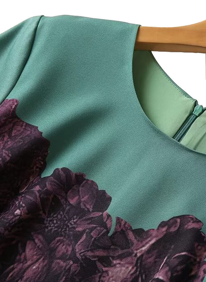 Spanish Queen Letizia Inspired Green Floral Fit-and-Flared Pleated Flare Dress