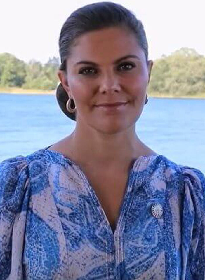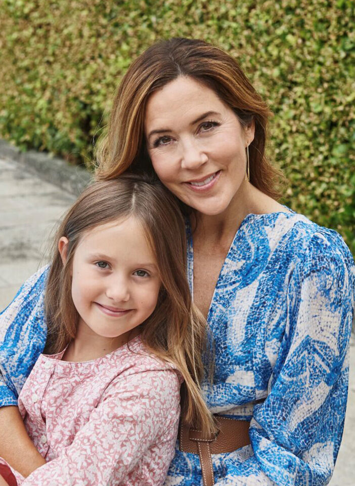 Get a rare glimpse into the private life of Mary, Queen of Denmark, Frederik, Crown Prince of Denmark, and their family with candid snaps from their summer break. In one photo, Mary stuns in a blue and white mosaic-patterned dress, showcasing her love for boho style.